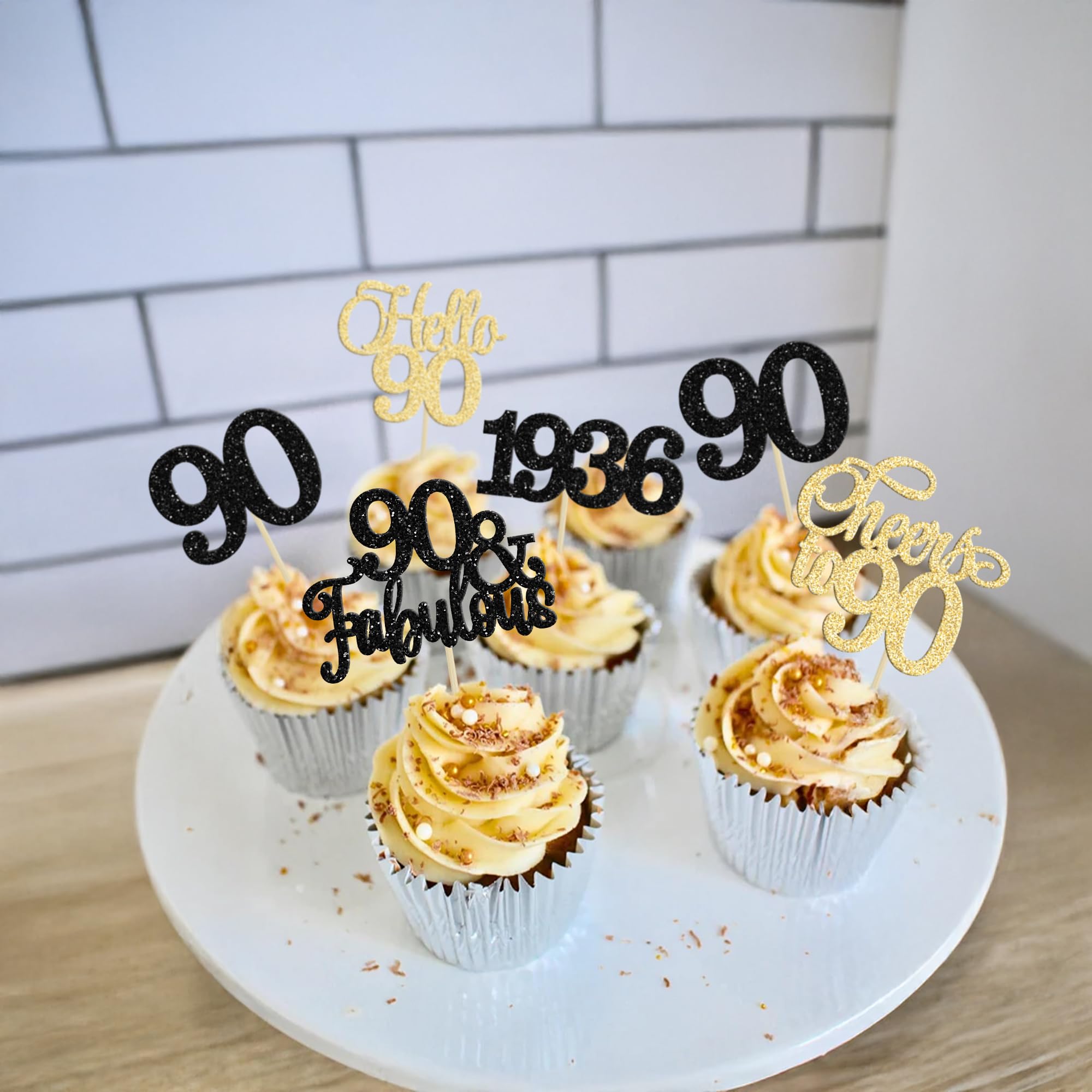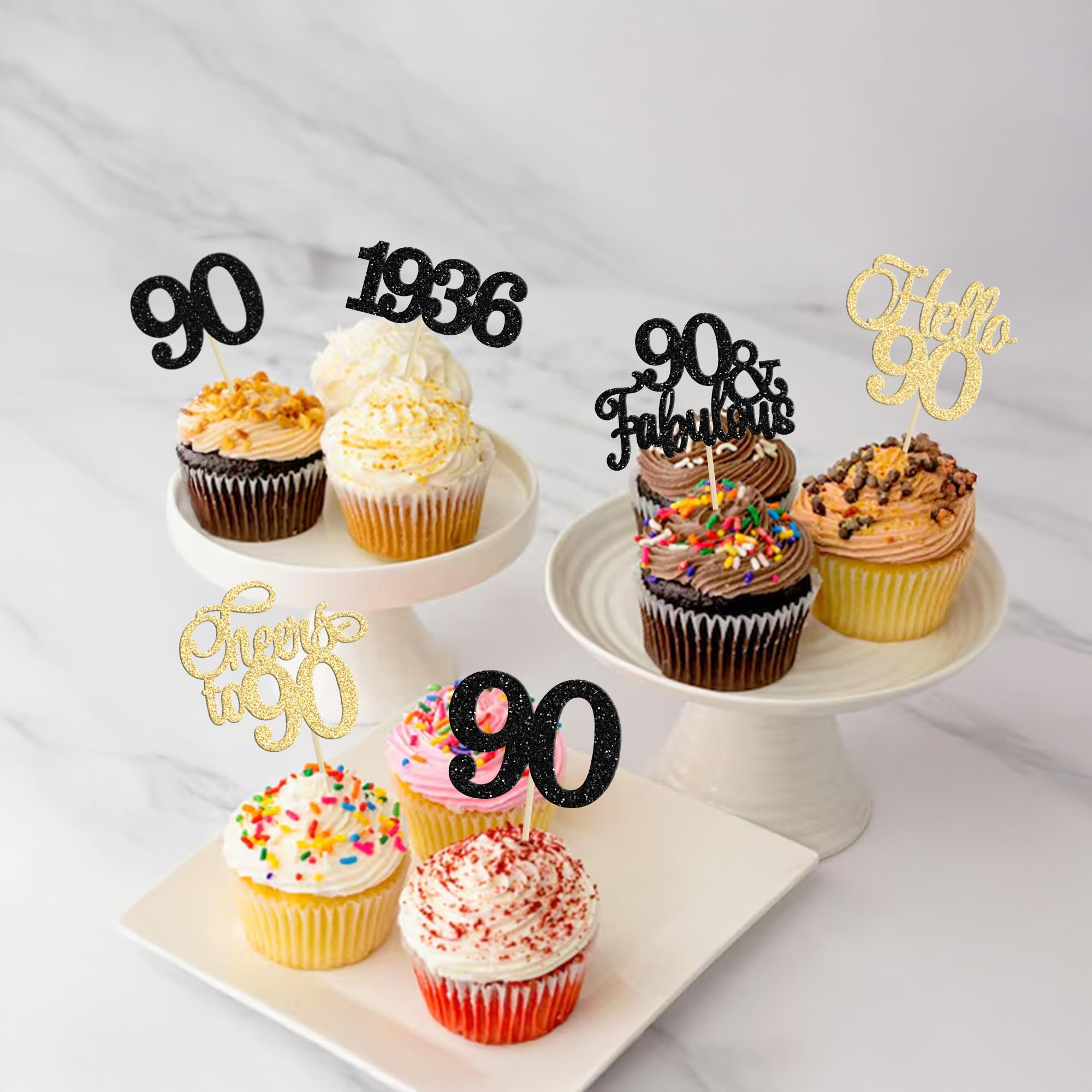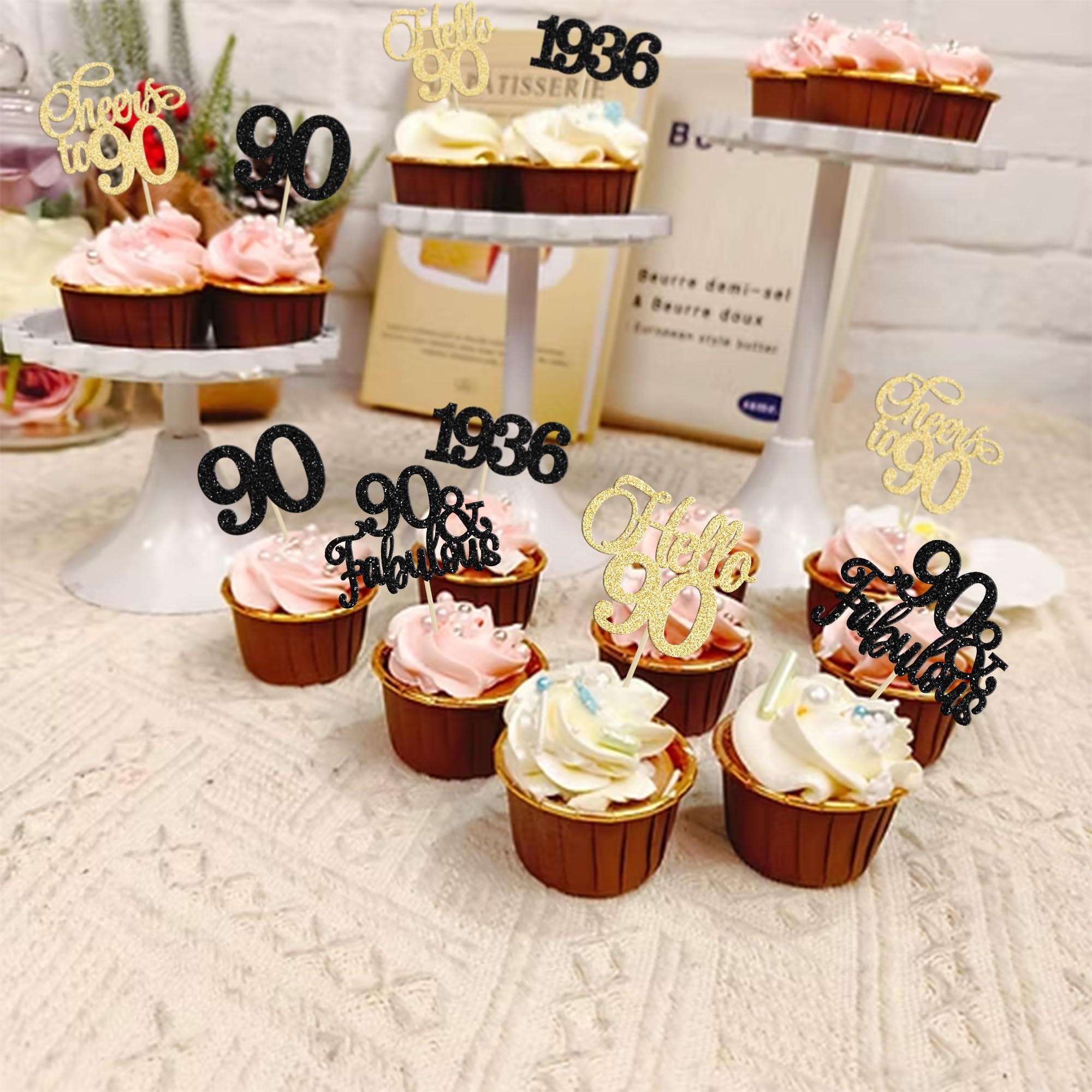 --Premium Material: These 90th Cupcake Toppers are made of high quality 300 gram card stock and food-grade toothpick, very safe to put them on cakes, cupcakes, ice cream, fruits, pie, dessert, cheese or any dish and food appetizer you want to decorate birthday party decorations.