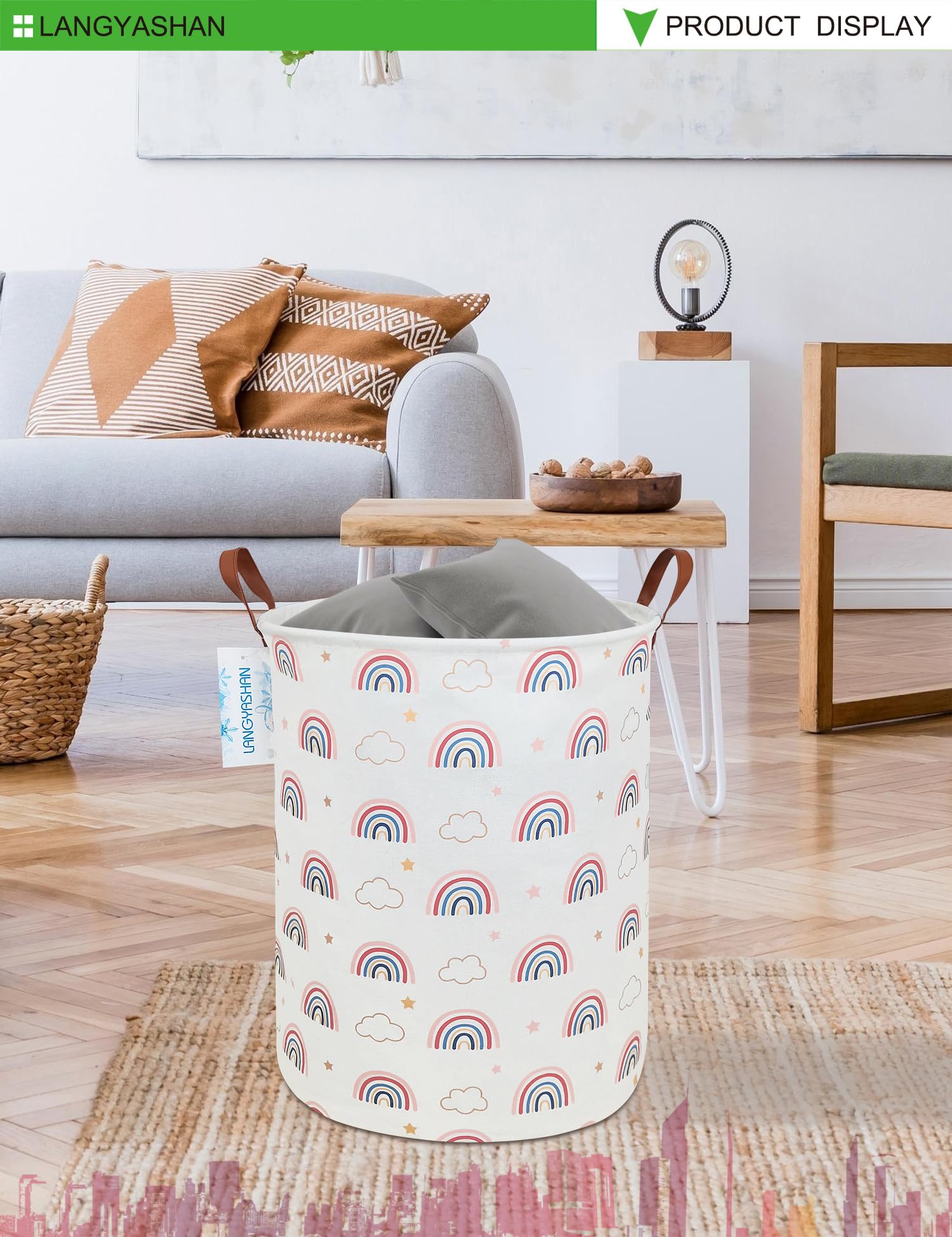 LANGYASHAN storage bin: Perfect for toys, clothing, office, closet organizer - man, woman, boys and girls With our storage bins laundry hamper, you will have a designated spot to neatly store items and keep your family and living spaces organized and efficient while still being within the comfort of your home. Modern and stylish design With modern and stylish design, our storage bins combine both of the ornamental and practical forms. They are not only household life good helpers but also charming decorations. Material: Polyester canvas linen and PE environmental protection waterproof coating. Product specification Size: 15.7"Dx19.7"H inches. Application: for store all kinds of clothing, toys, and other articles. Asily Store When Not In Use Organizational bins are collapsible for easy storage. Fold up the bins and tuck the portable bins anywhere. These bins are great to keep in the trunk of your car for shopping trips or when transporting items for easy in-and-out storage. Fabric reusable baskets are easy to grab and carry just about anything.