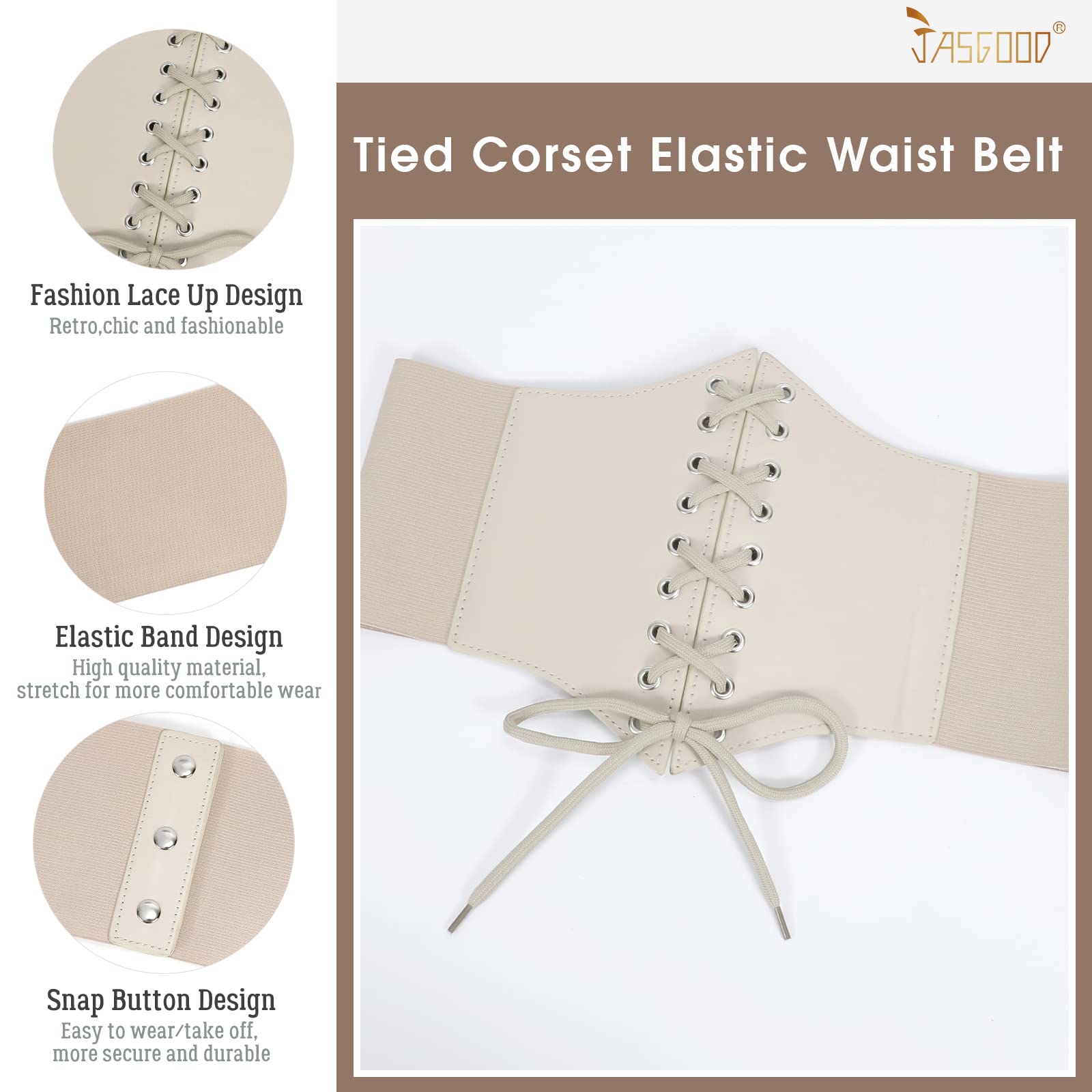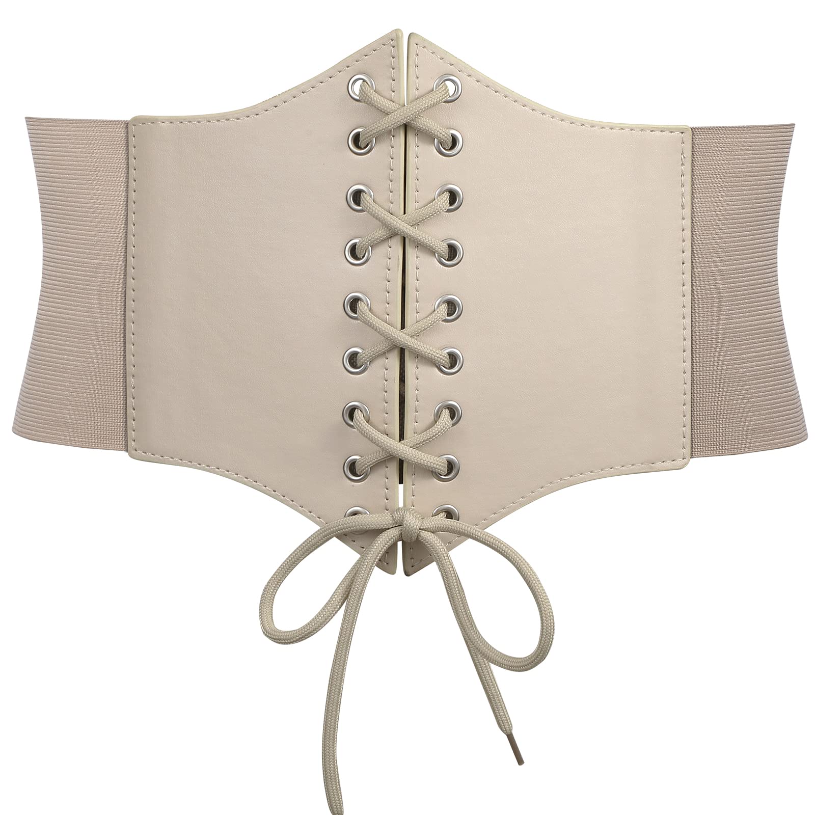 CLASSIC DESIGN– Classic vintage style leather lace-up tied waspie corset belt, quality PU leather front sewed with well elastic wide band, fastened by 3 snap buttons, which is easy to put on and remove. This waspie corset belt is super comfortable to wear. Flatters your waist. The 7.6" width prevents dress belt from rolling up or rolling down in wearing.