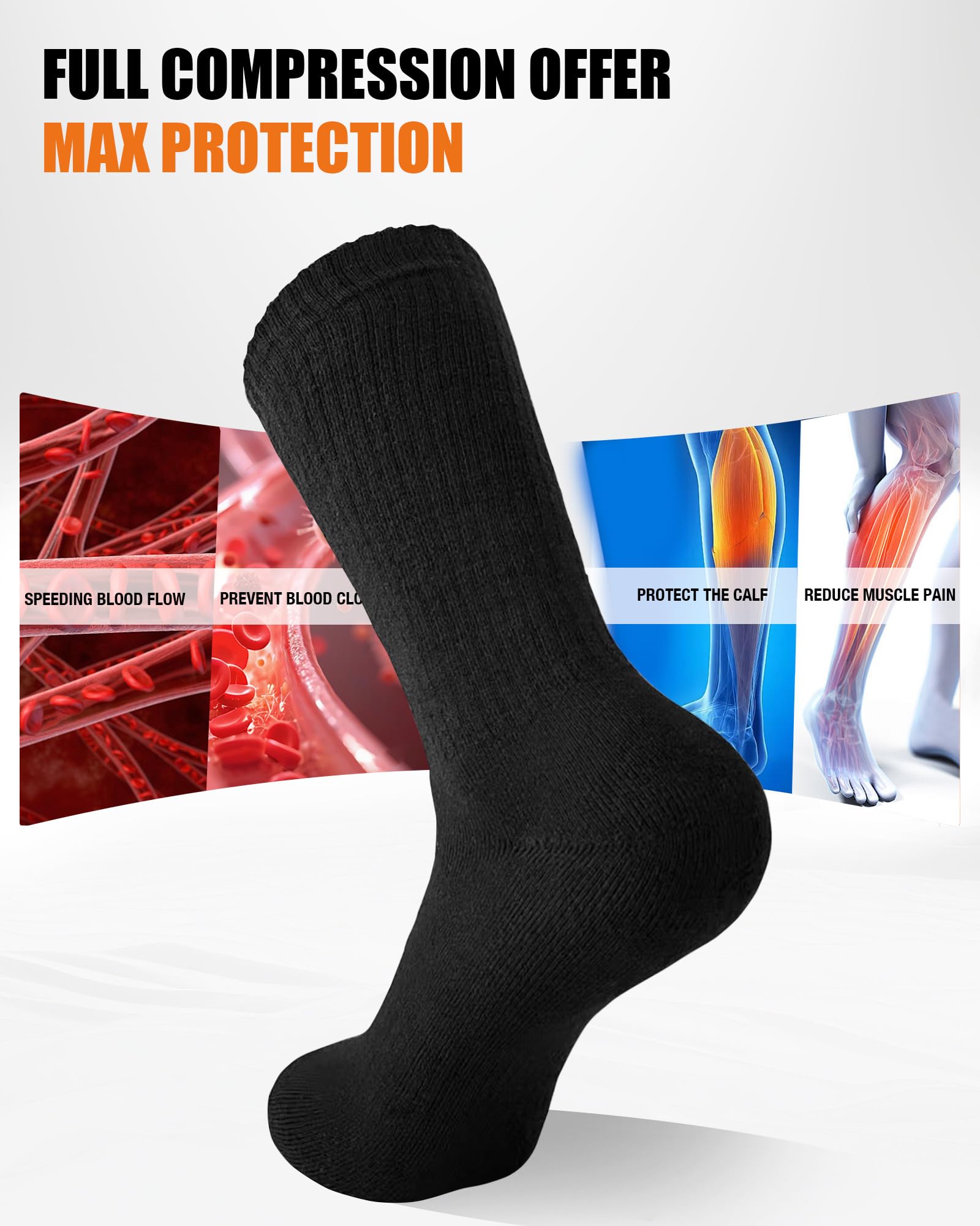 Superior Foot Protection: Our merino wool boot socks are designed with targeted compression arch support to stabilize your foot, promote circulation, and reduce fatigue. The innovative seamless knitting technology minimizes friction to prevent blisters. These thermal socks for men feature a highly elastic fabric that ensures a secure, snug fit and prevents slipping—delivering all-day comprehensive protection on the trail or worksite