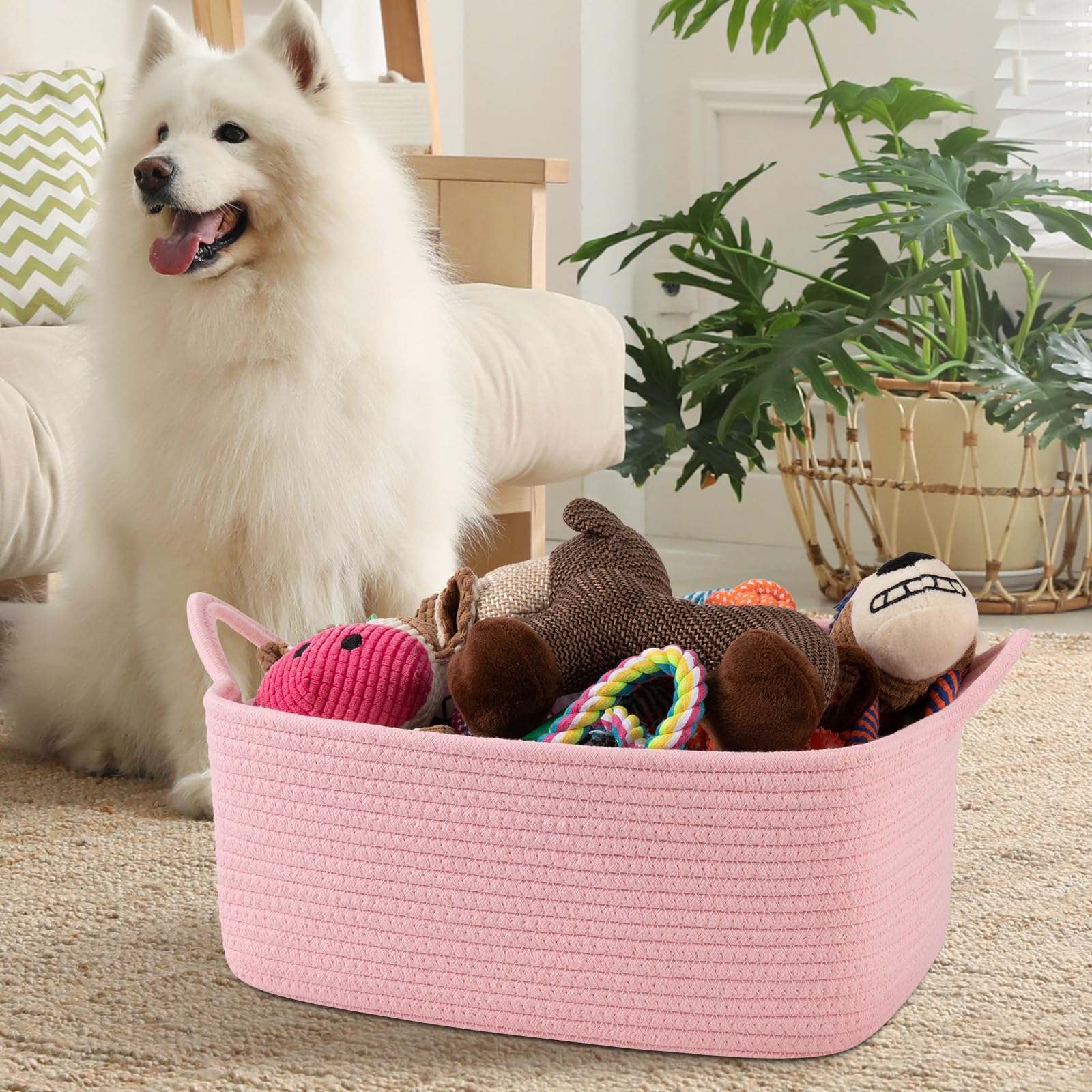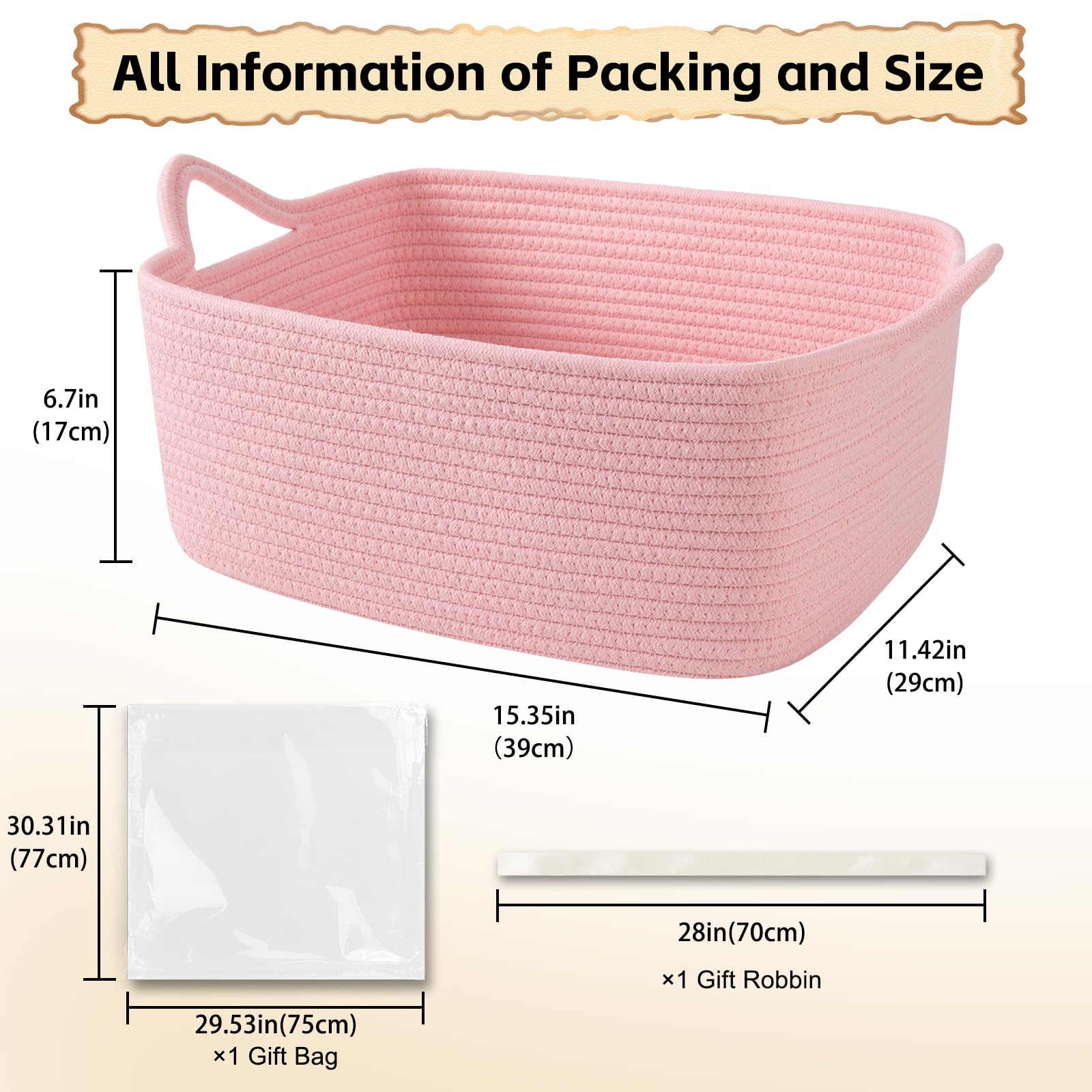 Safe Material: The basket is 15.35L*11.42W*6.7H and made of 100% pure cotton material, no chemical material, no odor, soft and skin friendly. It is no sharp edges that may scratch the floor, especially suitable for children and pets.We are passionate about providing you and your family with a healthy and clean home atmosphere