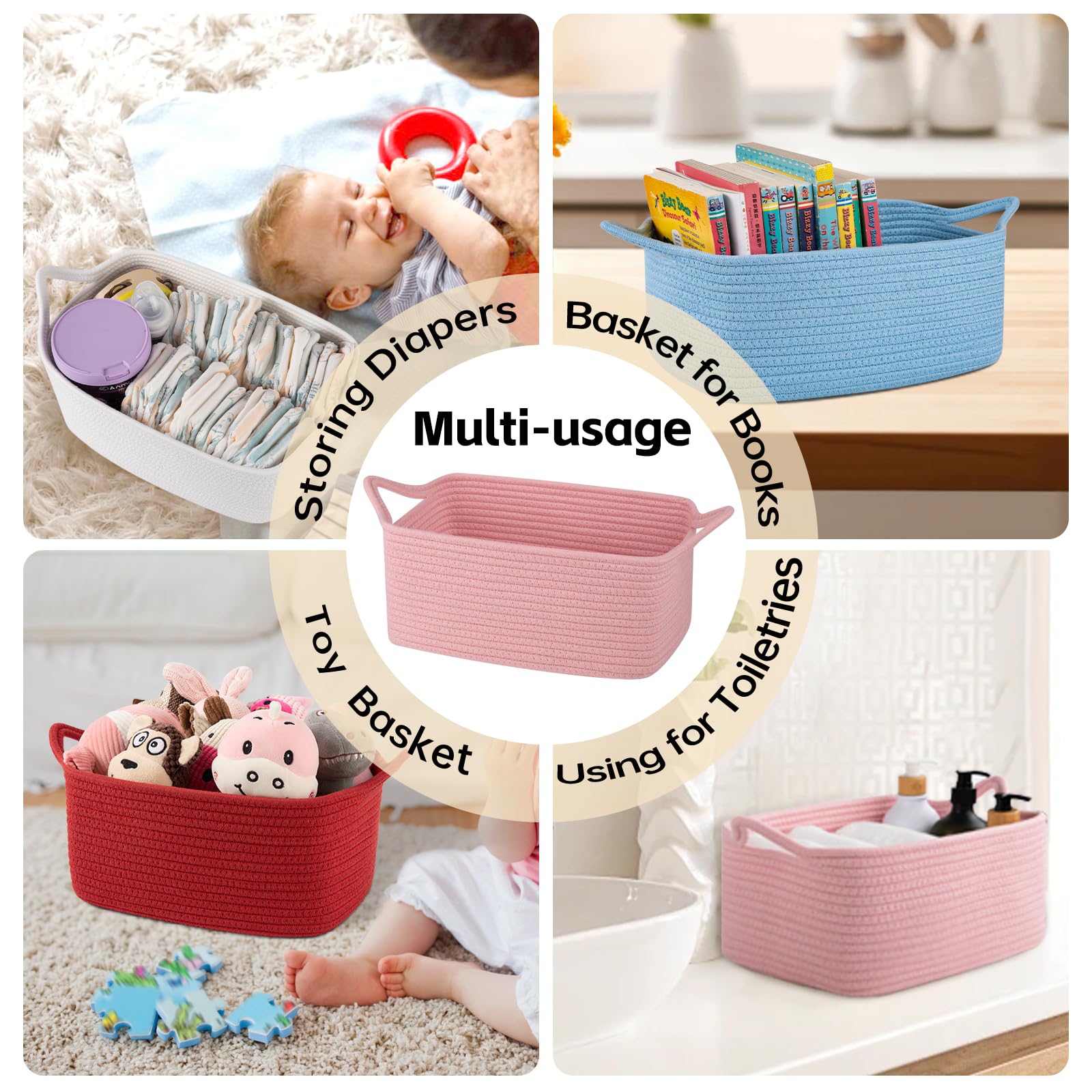 Multi functional storage: The woven basket has multiple practical functions and can store daily small items such as books, diapers, keys, fruits, snacks, etc. It can be used as a children's toy basket, dog toy basket, toiletries basket, shelf basket, or desktop organizing basket. It has a wide range of applicability and can be easily integrated into various home spaces, such as living rooms, bedrooms, children's rooms, washbasins, etc