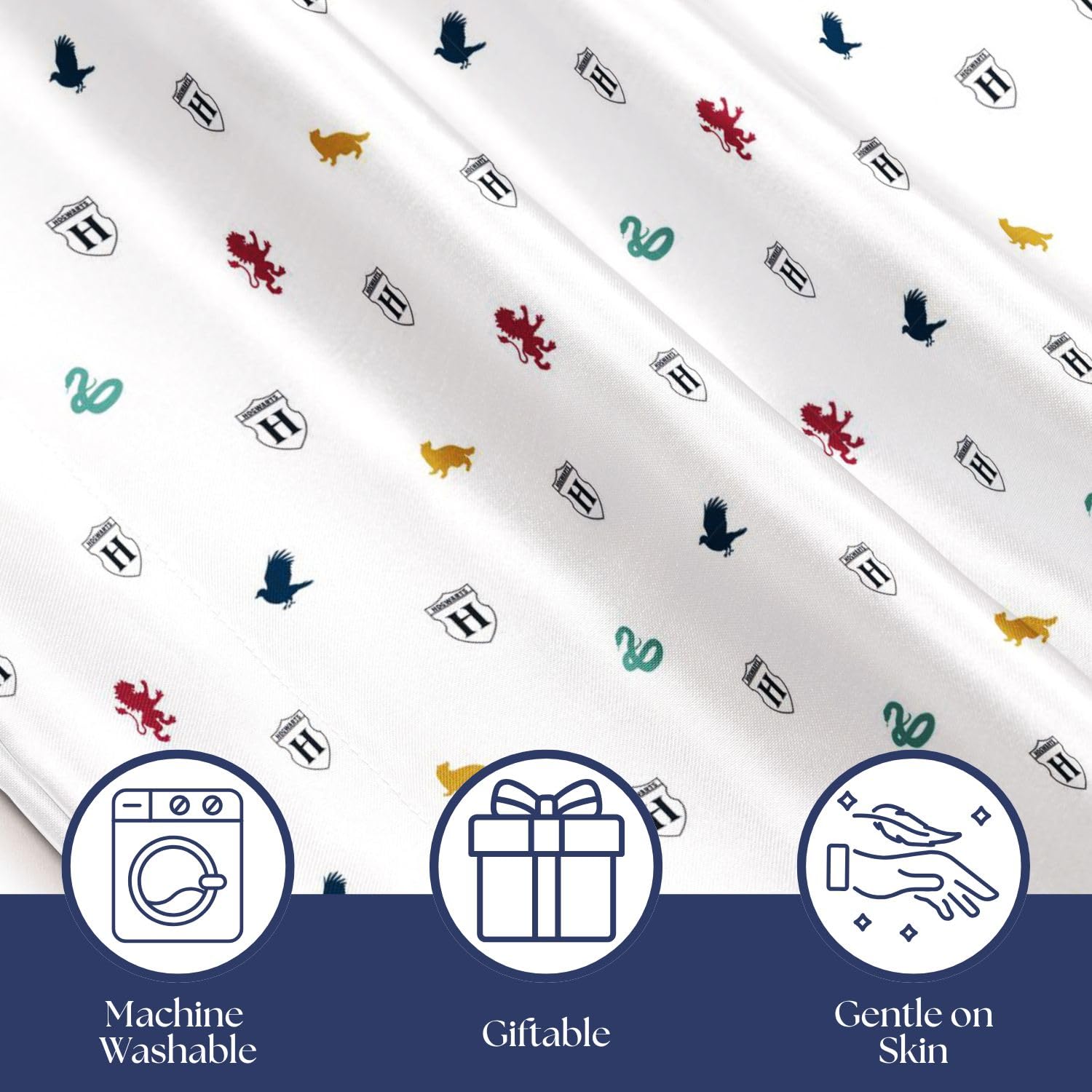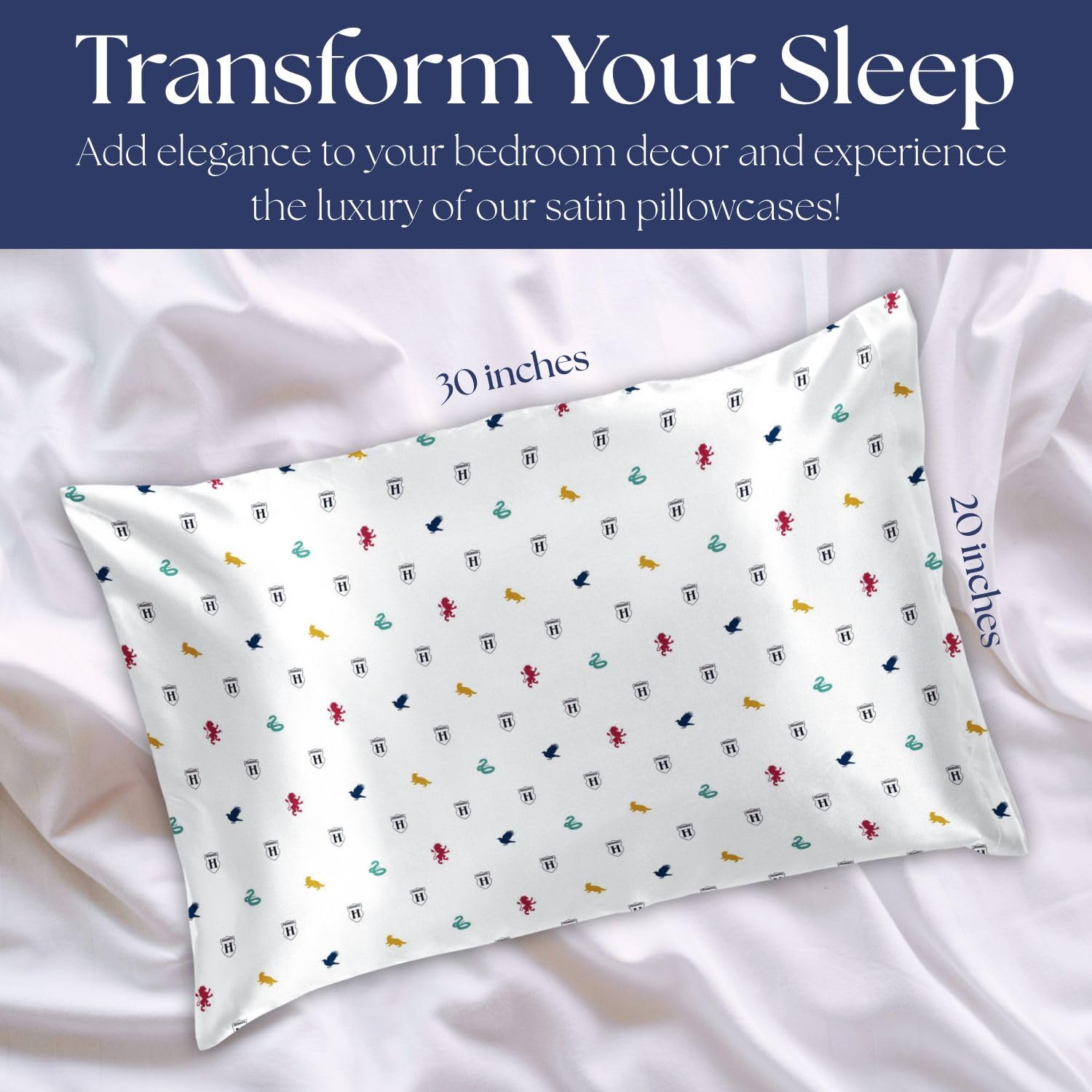 ICONIC DESIGN: Transform your space with these officially licensed 20x30 inch Harry Potter satin pillowcases, featuring a striking design of Harry and iconic Hogwart symbols from the movies. Made from premium satin, they provide a smooth, silky feel that's gentle on your hair.
