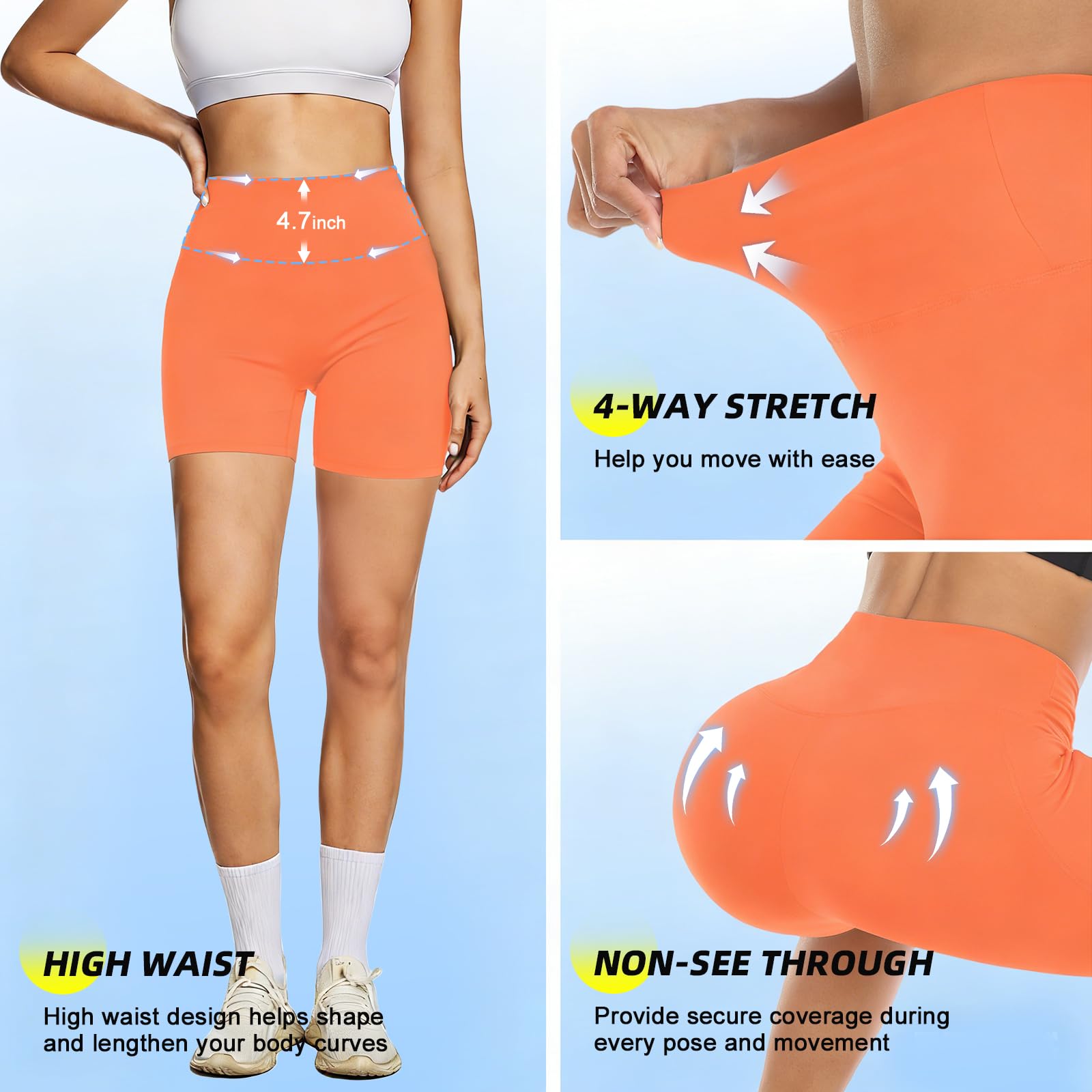 ▲4 WAYS STRETCH & NON-SEE-THROUGH - This workout spandex shorts for women is made of 4 way stretch and non see through fabric, which provides maximum comfort and protection during your every pose and movement, allows for maximum comfort and wear ability