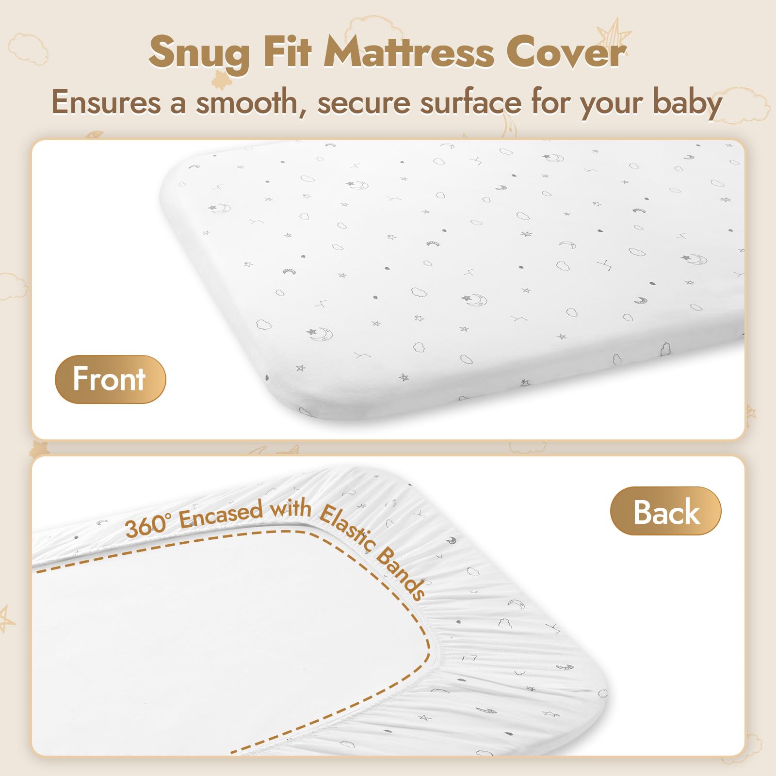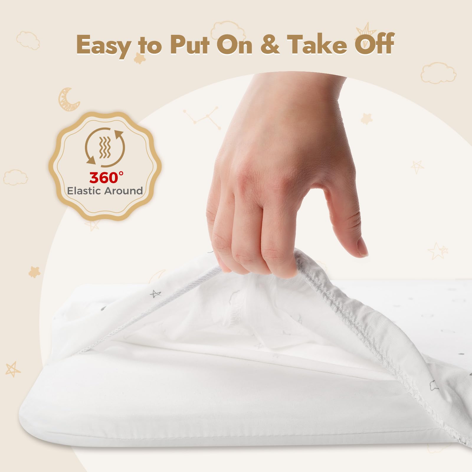 Quick On & Off: Fitted with a 360Β° premium elastic edge, the bedside bassinet sheets 33x20 stays securely in place for a snug fit and is easy to put on and take off, making cleanup a breeze for busy parents.