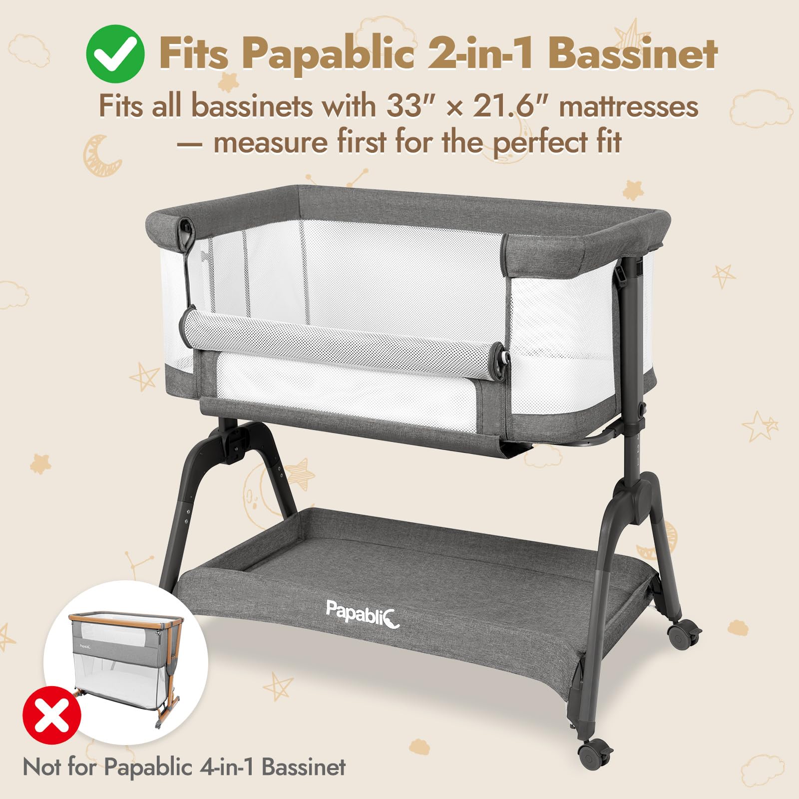 Bassinet Mattress Sheets: 33 x 21.6 inches. Compatible with 2-in-1 Papablic Baby Bassinest (Model Y15) and other 33" x 21.6" bedside sleeper mattresses. To ensure the perfect fit, we recommend measuring the inside dimension of your mattress before ordering. ππππποΌ ππ¨π ππ¨π« πππ©πππ₯π’π π π’π§ π ππππ² πππ¬π¬π’π§ππ.