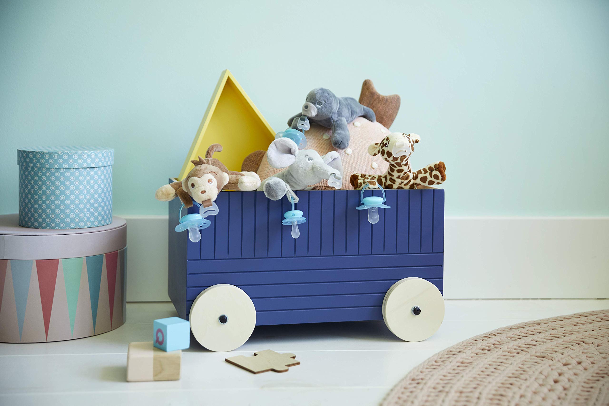Stuffed animal keeps the pacifier close to baby