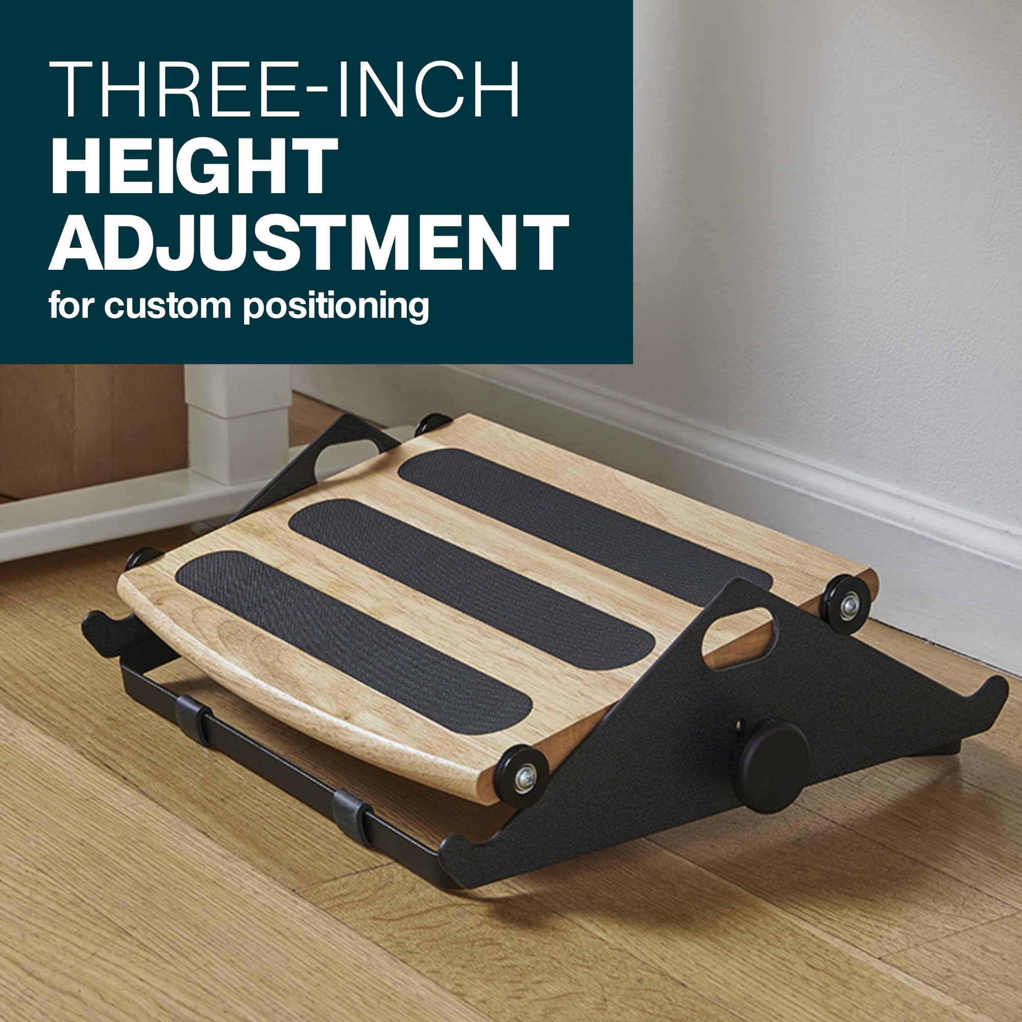 High End Construction: Enjoy more comfortable work days for years to come with this solid wood footrest, constructed with a durable steel frame, non-skid pads to keep your feet in place, and rubber feet to protect your floors