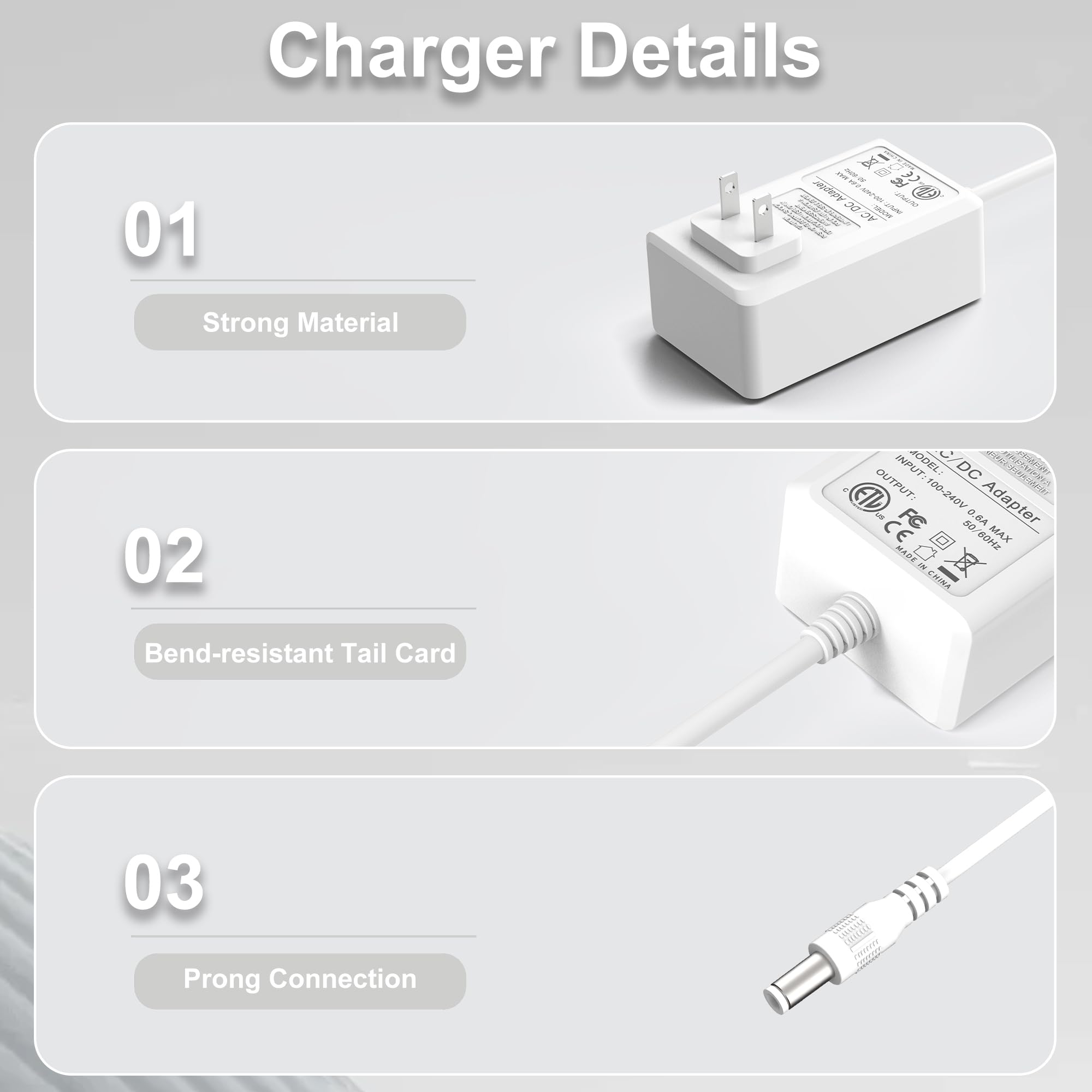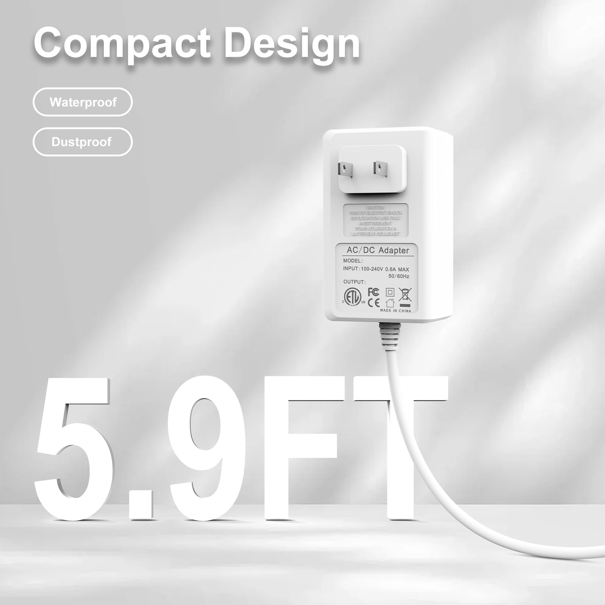 [Products Specification] Charger replacement for Hatch Sunrise Alarm Clock, Input: 100-240V AC, 50-60Hz 5.9FT/1.8M longer power cord enough to use any situation.
