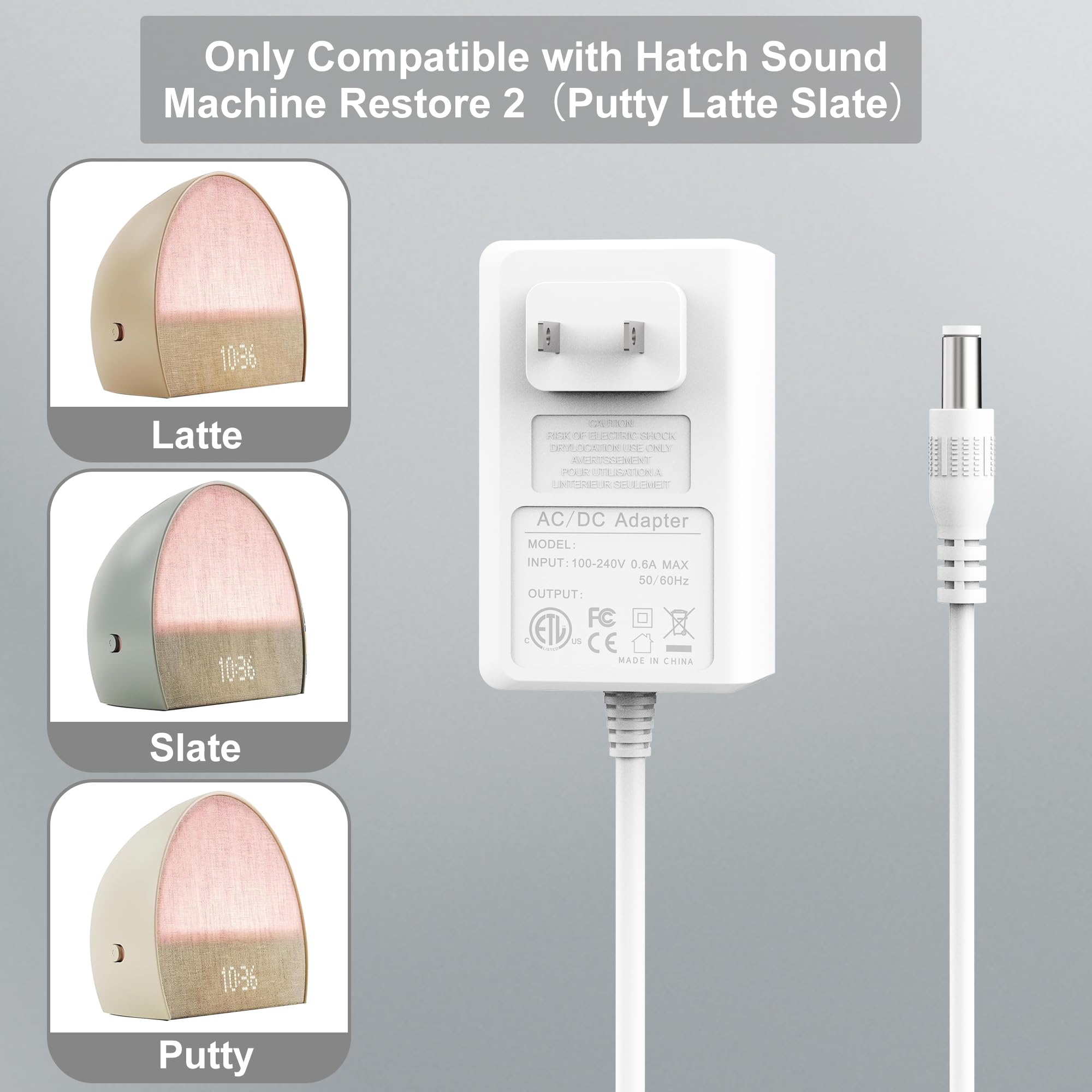 [Compatible With] Charger for Hatch White Noise Only Compatible with Hatch Restore 2 Gen Latte Slate Putty. Please check your device model carefully.