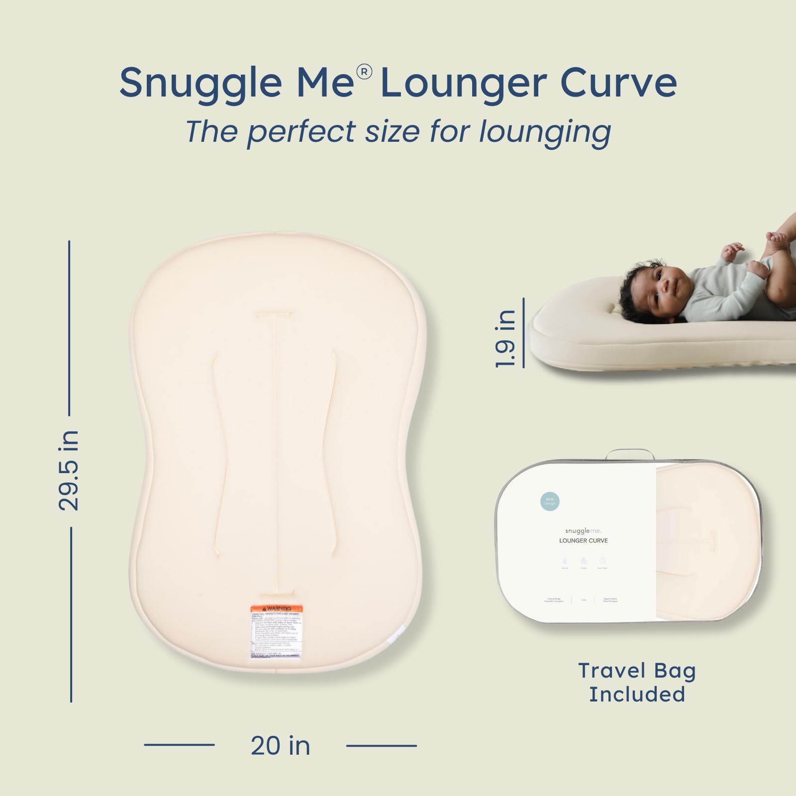 SNUGGLE ME LOUNGER CURVE 2025: The new 2025 design baby lounger curves around your baby to create a cozy space for playtime, tummy time, and lounging. Measures 30" × 20" × 1.9". This new design features lower sides of 1.9" vs the Original Lounger's 4.5", to allow for more freedom of movement. It also comes with a padded centre for added comfort.