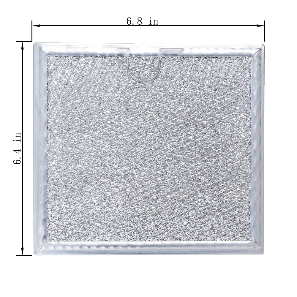 Product Specifications - DE63-00666A grease filters Measured approximately 6.8" x 6.4". Help to keep the cooking grease away from the stove and keep your kitchen microwave vent smelling fresh. Our door strike works great and fit perfectly, Very easy to install.