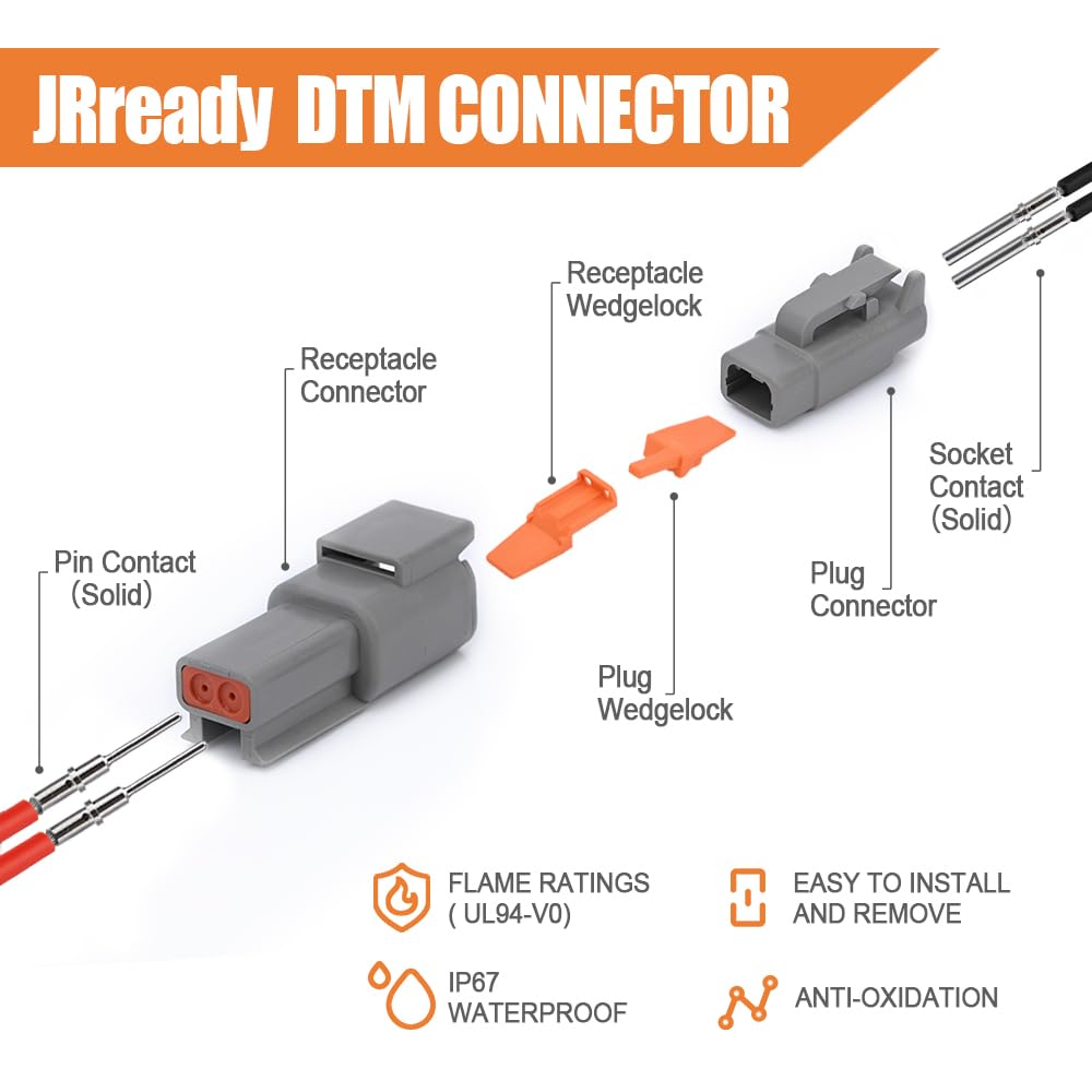 DTM Connectors: DTM connectors have 2 3 4 6 8 and 12 cavity types, all connectors are made of PA66 nylon,durable and waterpoof,convenient to connect and disconnect,suitable for long time use.