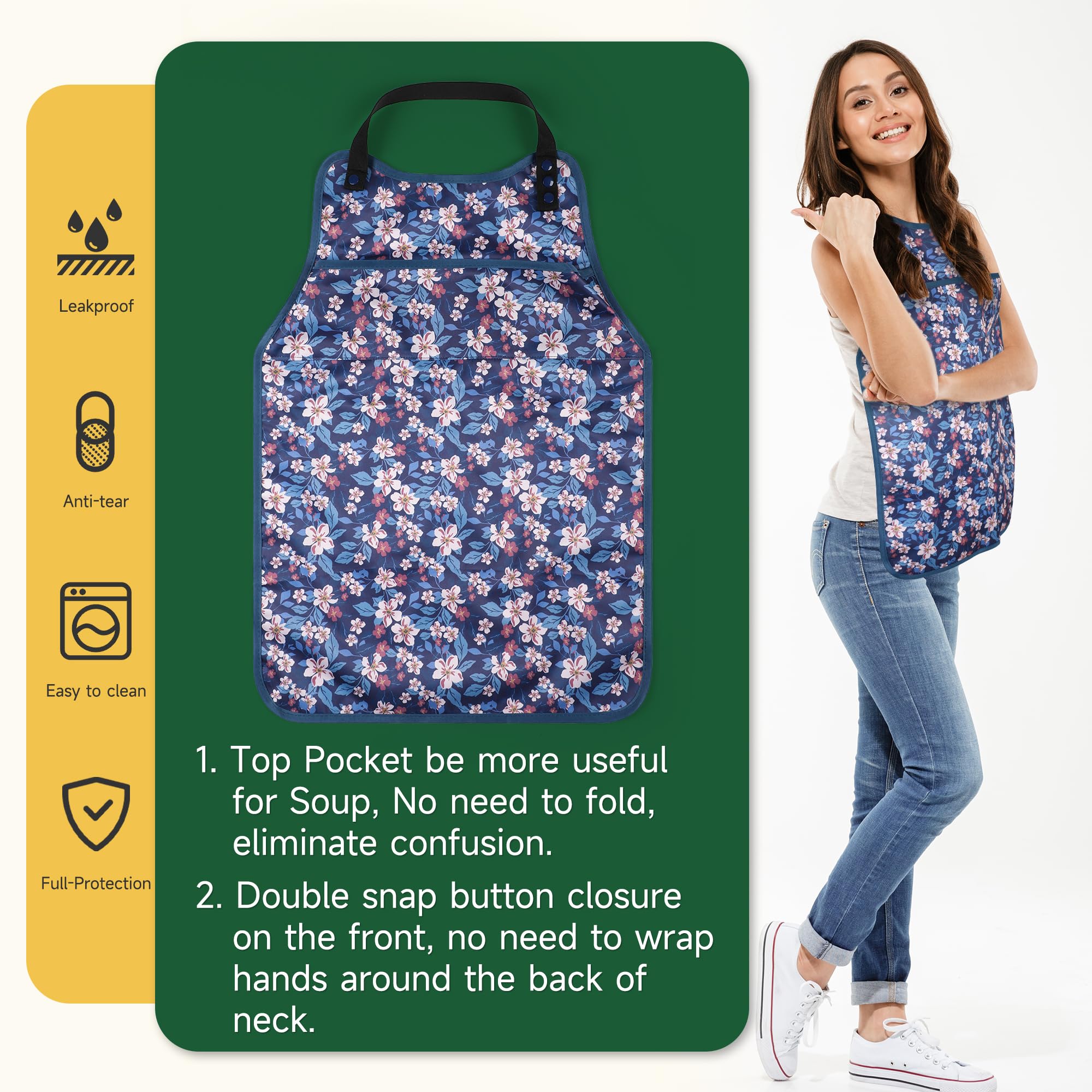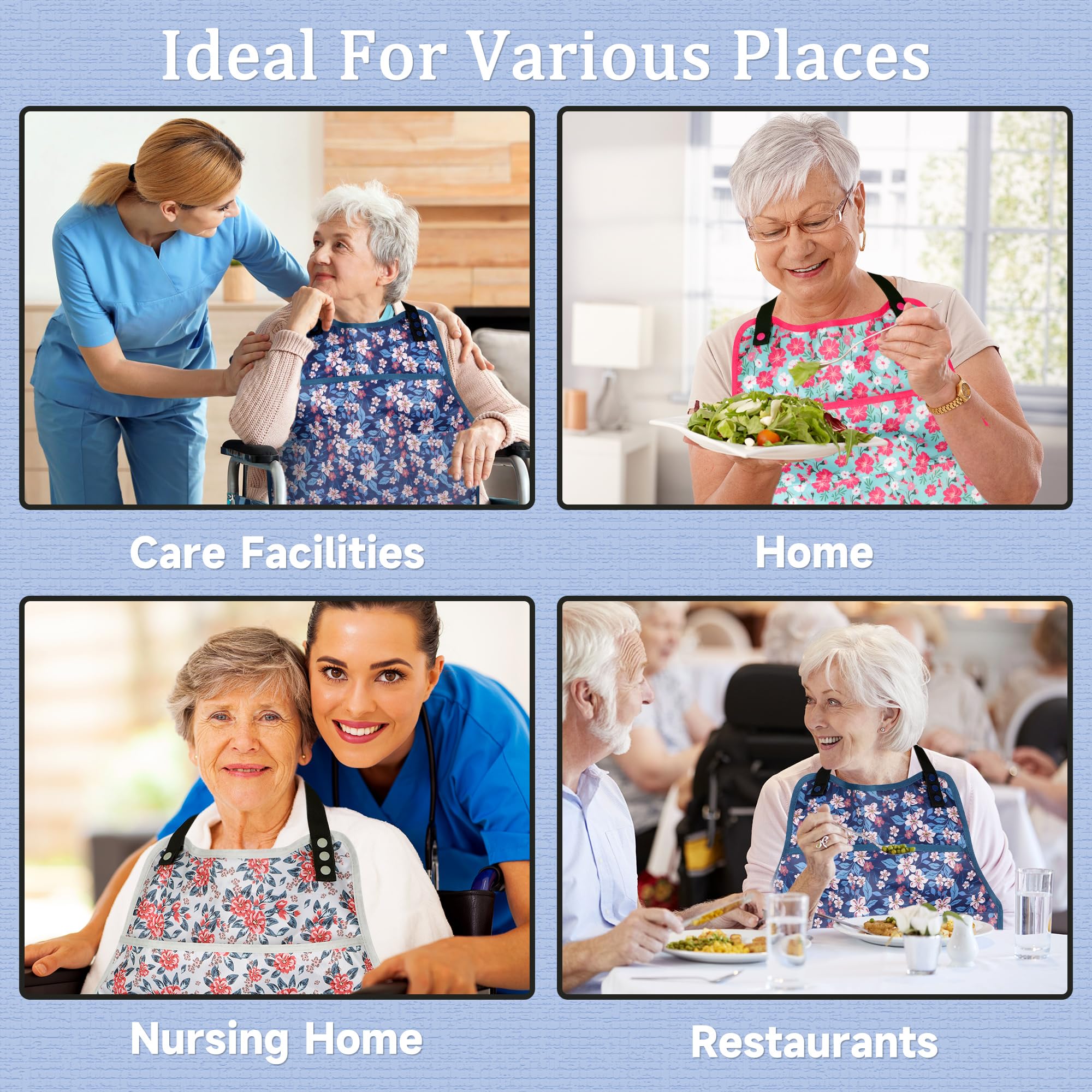 High-Quality Lining: Bibs for adults with waterproof lining isolate liquids and hot drinks to prevent burns. It catch spills and drool at mealtimes, keeping your clothes clean and dry, free of stains, while maintaining an attractive appearance