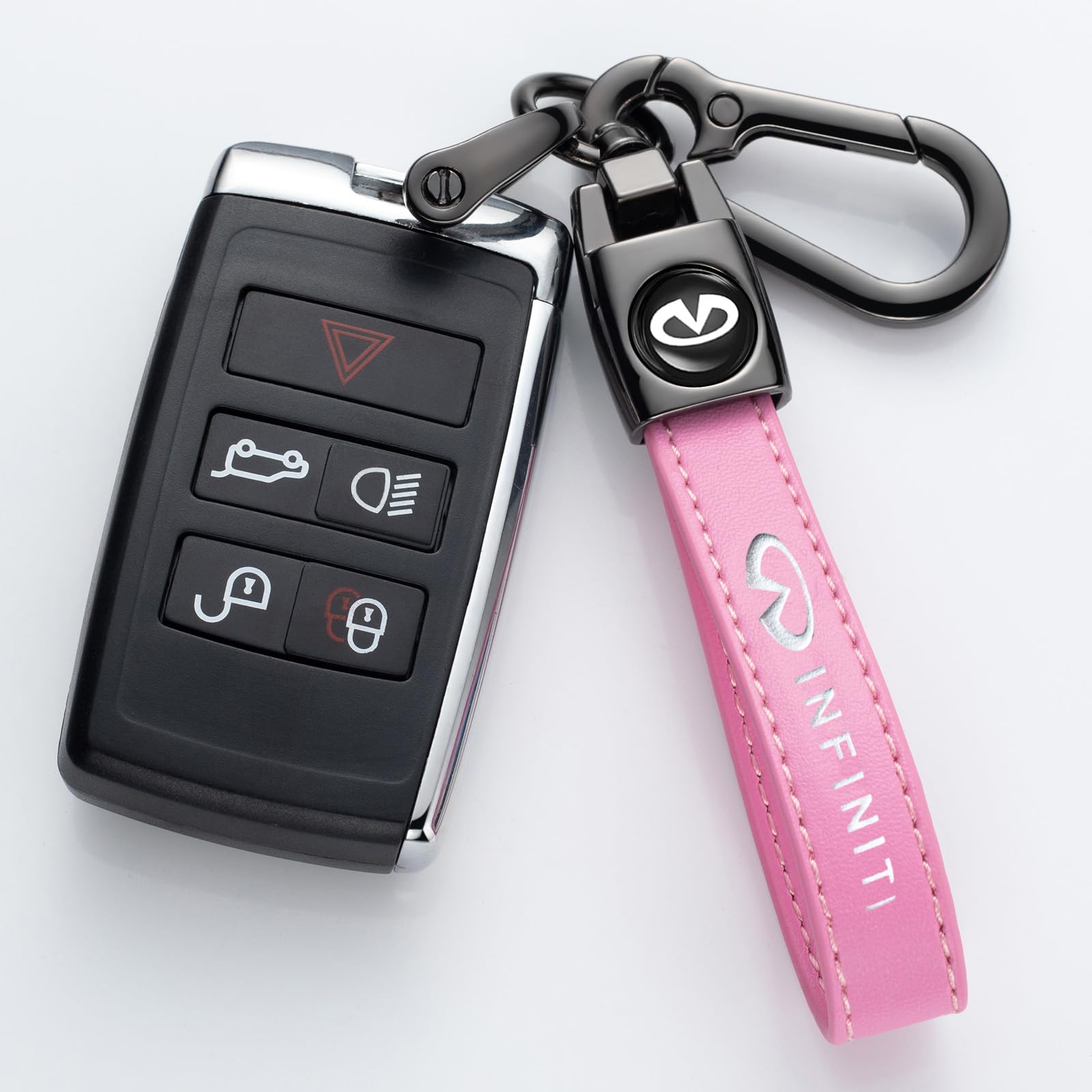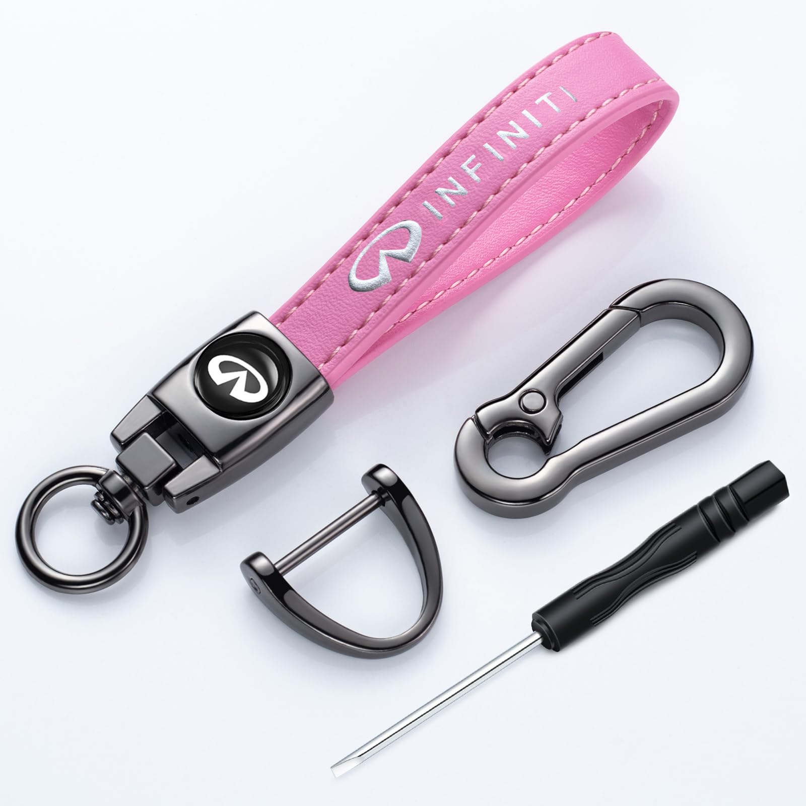 Fashionable appearance: The zinc-coated iron part of the keychain has a shiny finish, complements your keys, and allows 360-degree rotation.