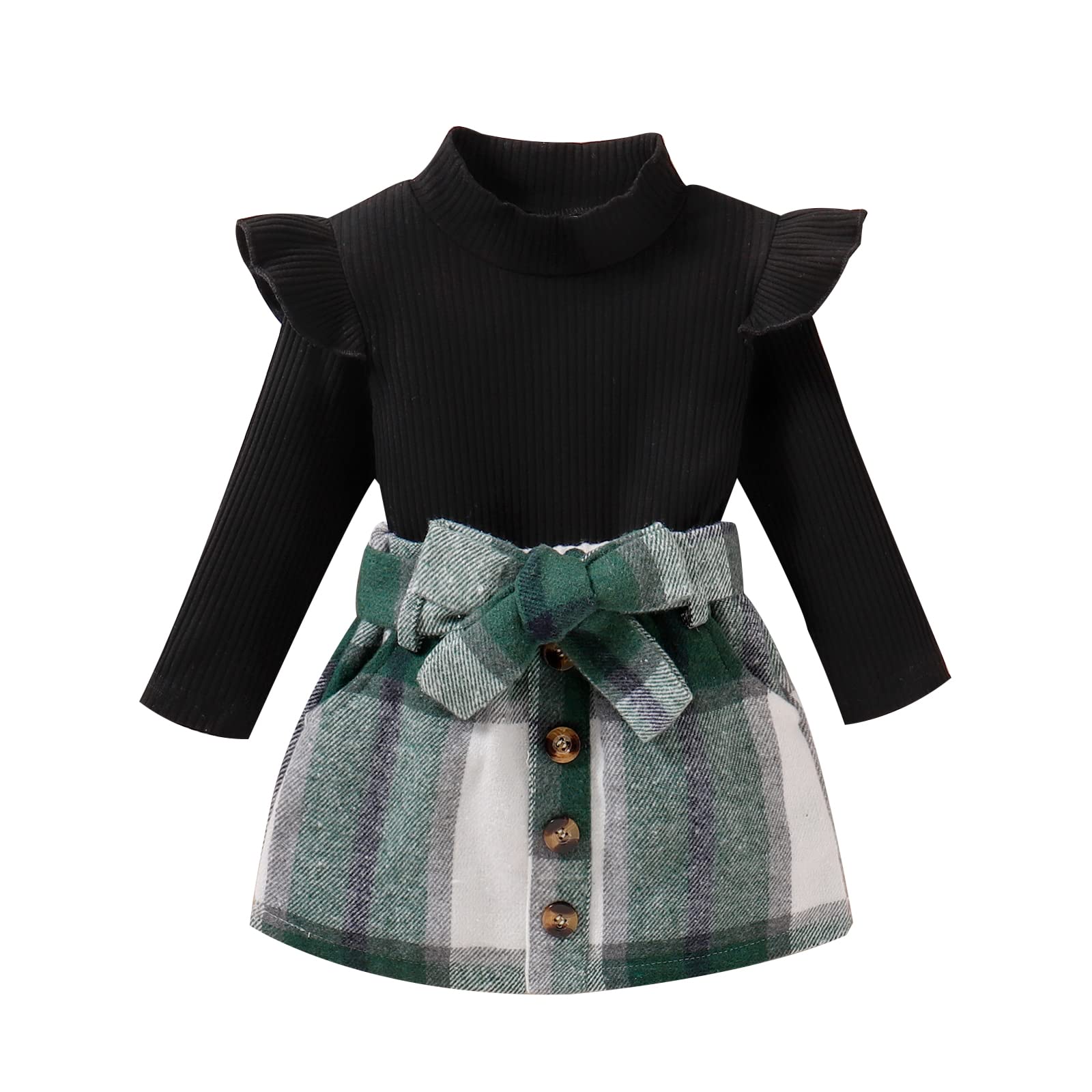 MATERIAL: Toddler girl shirt sweater top is made of cotton and polyester, bottom skirt is made of cotton blend and polyester, soft, breathble, and comfortable, sweet toddler baby girl 2 piece skirt set, cute baby girl clothes.