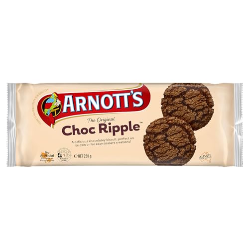 A chocolate-flavoured biscuit that is commonly used by Australian home cooks as the basis of 'Chocolate Ripple Cake' by adding layers of freshly whipped cream between each layer of biscuit and covering the whole construction in more cream and is then refrigerated overnight.