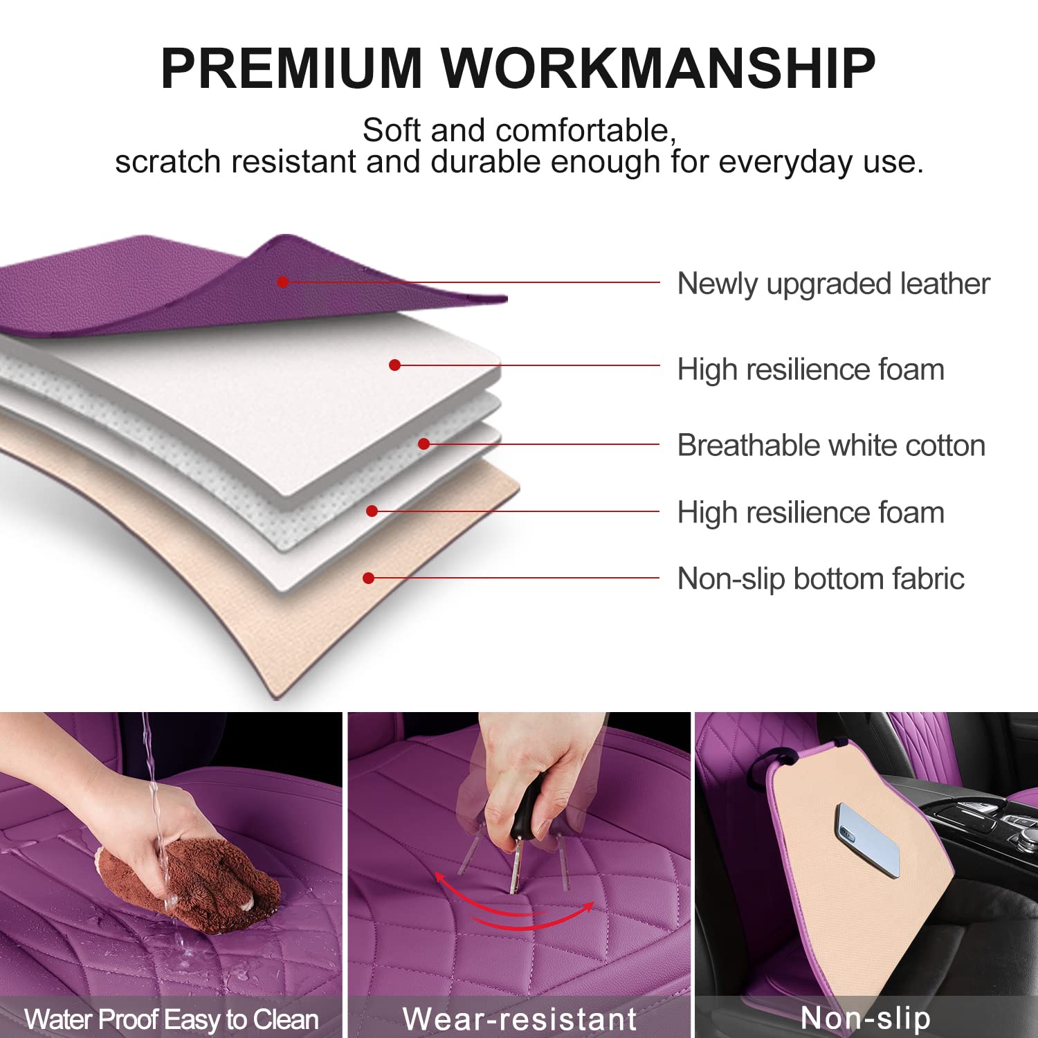 Leather Soft & Comfortable: The PU leather front seat covers are wear-resistant, scratch-resistant, waterproof, and easy to clean. Rebound composite material is soft in touch, creating top resilience for maximum comfort during your drive. The non-slip backing ensures that the front seat covers stay in place. It's easy to care for and clean with a wet soft towel.