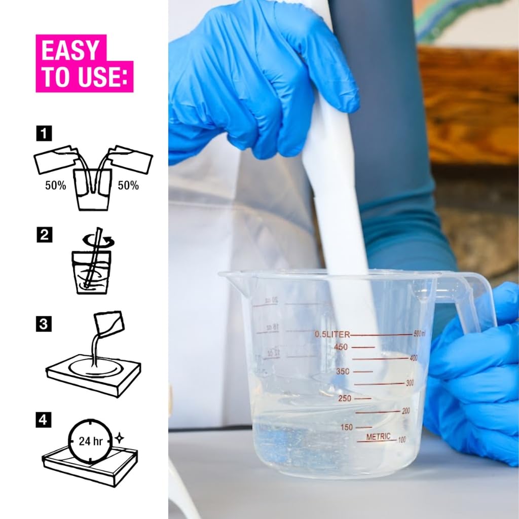 Includes: 4 oz resin, 4 oz hardener, and step-by-step instructions.