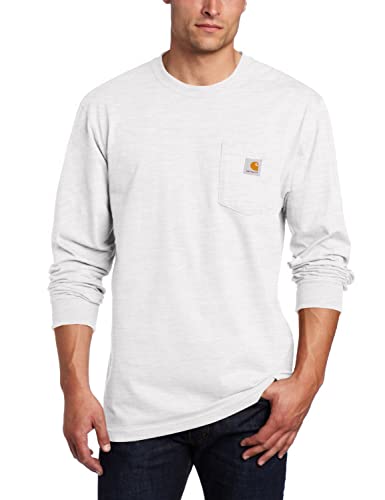 Description Product Description Heavyweight, durable and casual. Holds up when you put it through the ringer day after day. From the Manufacturer Made of 6.75-ounce, 100% cotton jersey our long sleeve pocket t-shirt makes for perfect workwear layered or worn alone. It features a crew neck with a generous left chest pocket and side-seamed construction to minimize twisting. Ash fiber content is 99%/1% polyester. Heather gray fiber content is 90% cotton/10% polyester.