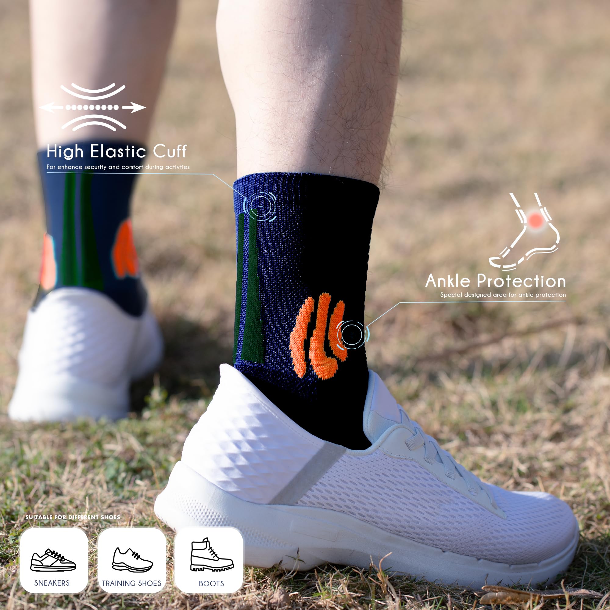 [Compression Design & Arch Support System]These athletic permformance socks are designed with compression. Just the right amount of compression and an arch support system ensures supportive stability for the arches during intense exercise, whilst maintaining ankle flexibility.