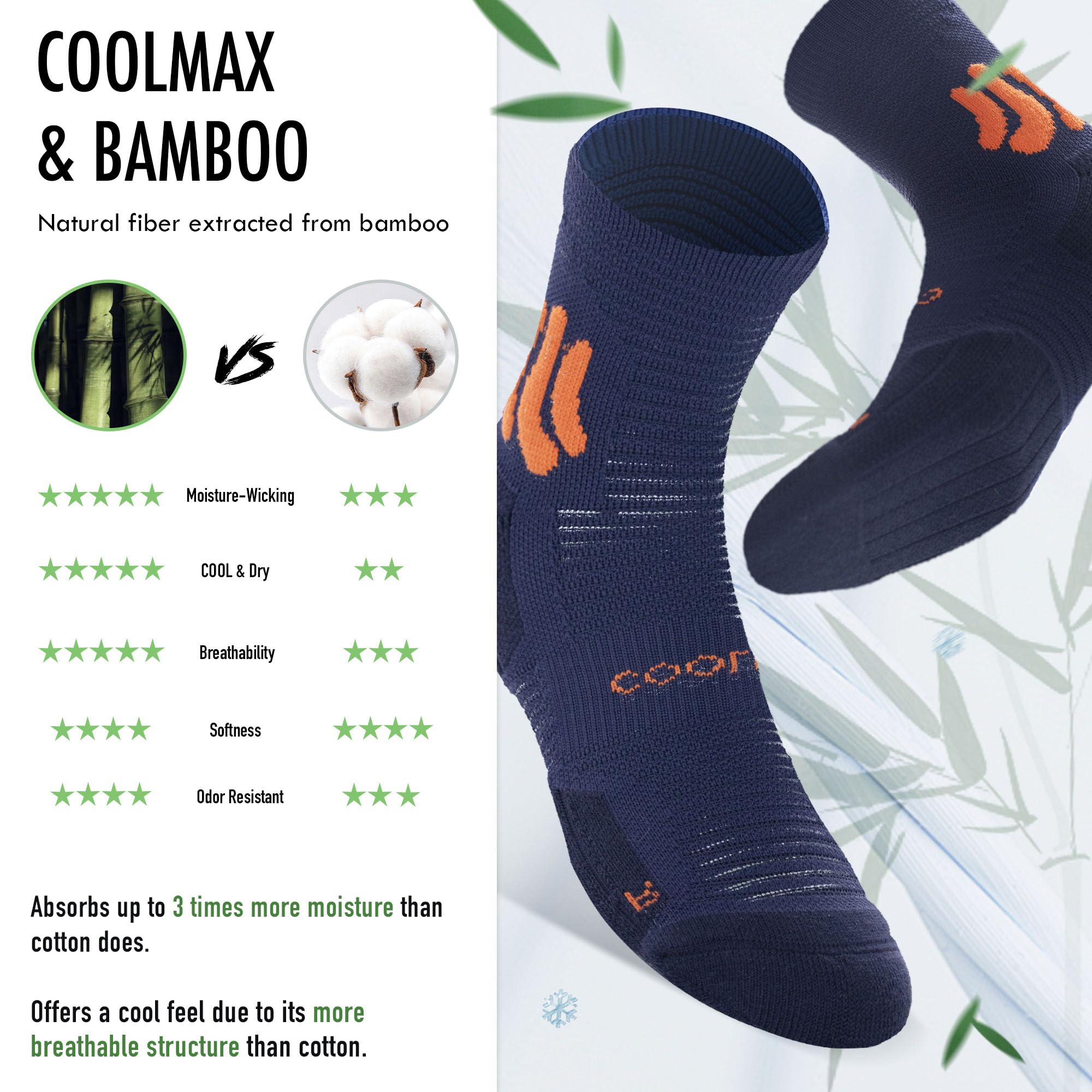 [Breathable - Coolmax & Plants Viscose]The high quality tech material brings extreme breathability and moisture wicking to the running socks, mesh in turn brings a soft touch. In addition, the seamless process enhances the comfort and durability of these compression socks. Nice anti odor socks help you avoid embarrassment.