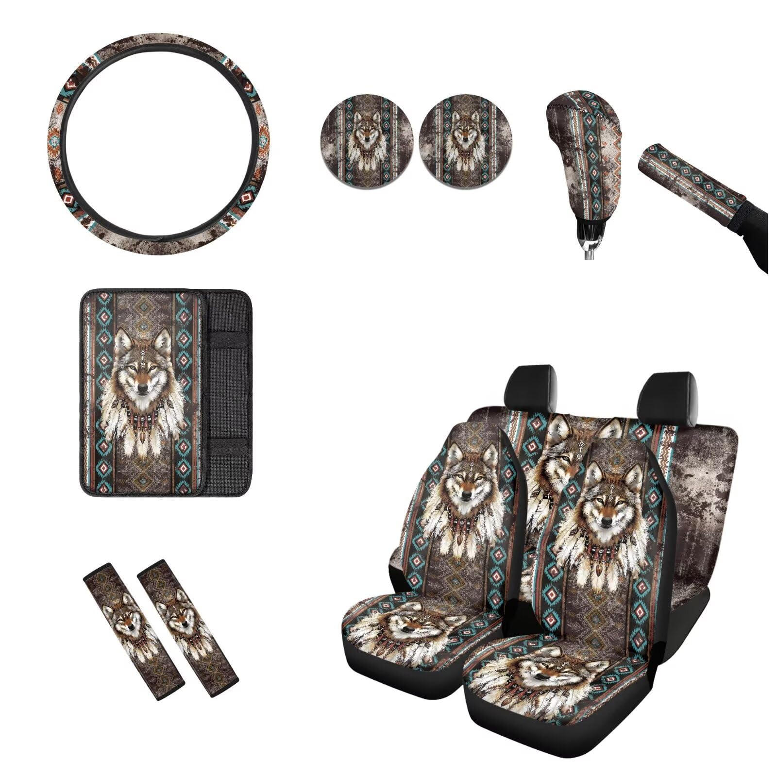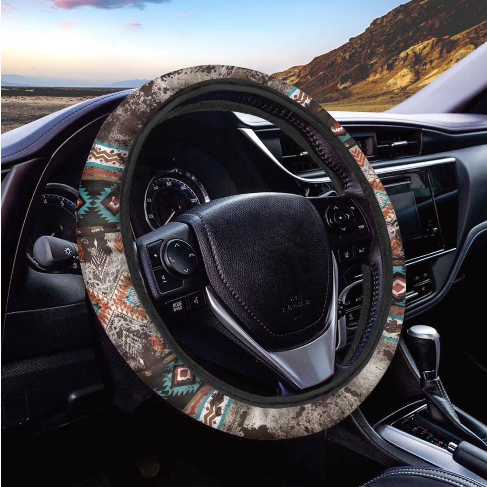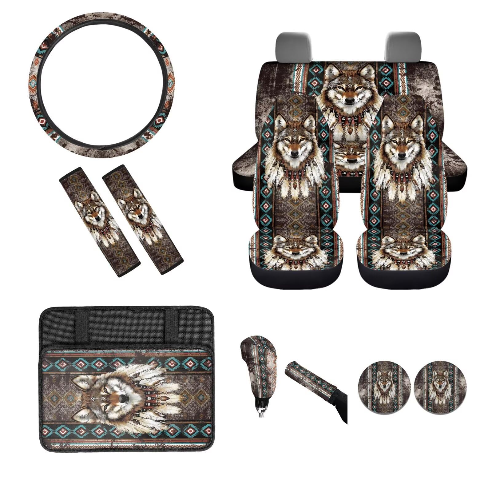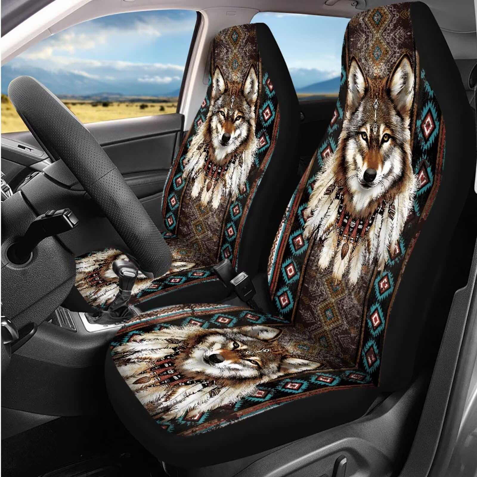 🚗UNIQUE PRINT: Emarkable colors and graphics to add to your car's interior,Suitable for drivers to decorate their vehicles.such as Sunflower/Butterfly/Tie-Dye Rainbow/Hipie Bohemian/Galaxy/Ethnic/Cactus/Aztec tribal/Cute Cat Dog Wolf Animal Print/Aqua Flower and Tropical Sea Turtle, Etc, These special edition Automotive Interior Accessories will add a touch of elegance and Class to your vehicle.