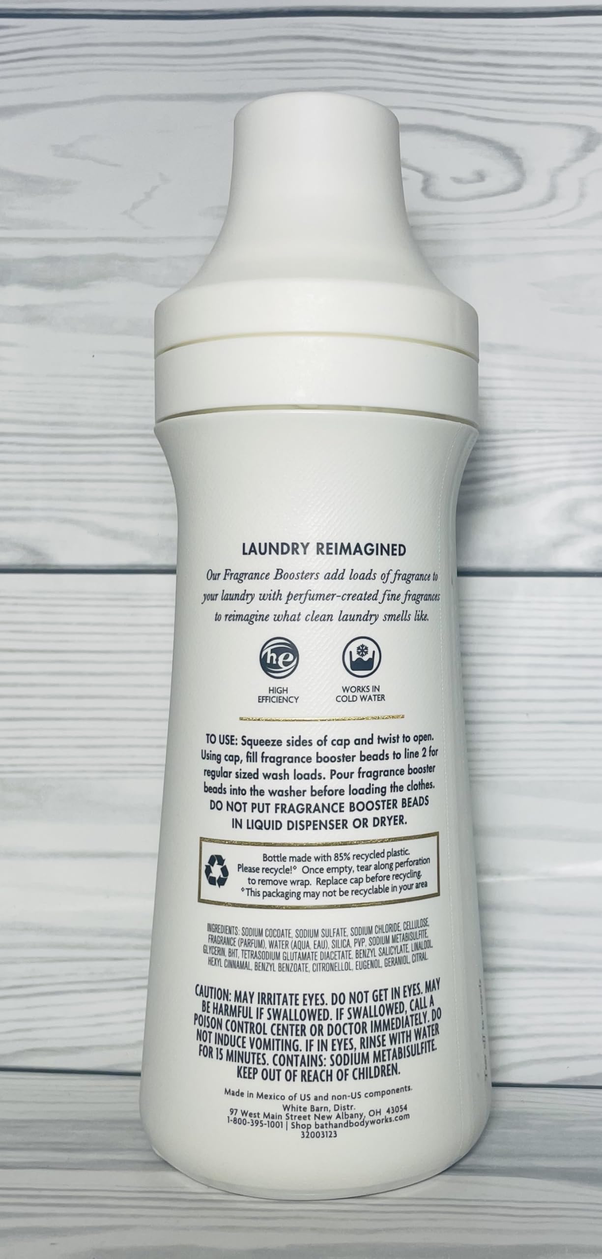 What it does: Add loads of fragrance to your laundry with perfumer-created fine fragrances to reimagine what clean laundry smells like. Works in both High Efficiency and Standard Efficiency Works in cold water Squeeze sides of cap and twist to open. Using cap, fill fragrance booster beads to line 2 for regular sized wash loads. Pour fragrance booster beads into the washer before loading the clothes. DO NOT PUT FRAGRANCE BOOSTER BEADS IN LIQUID DISPENSER OR DRYER.