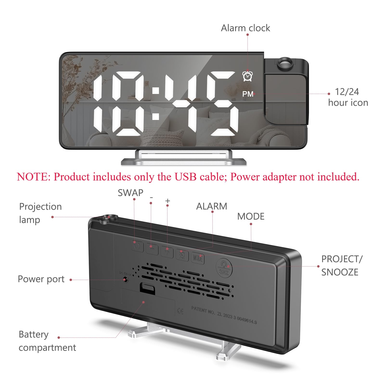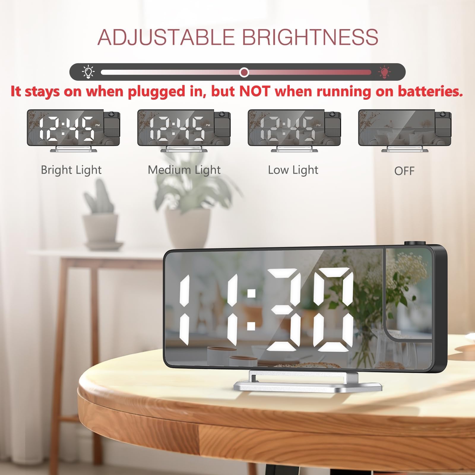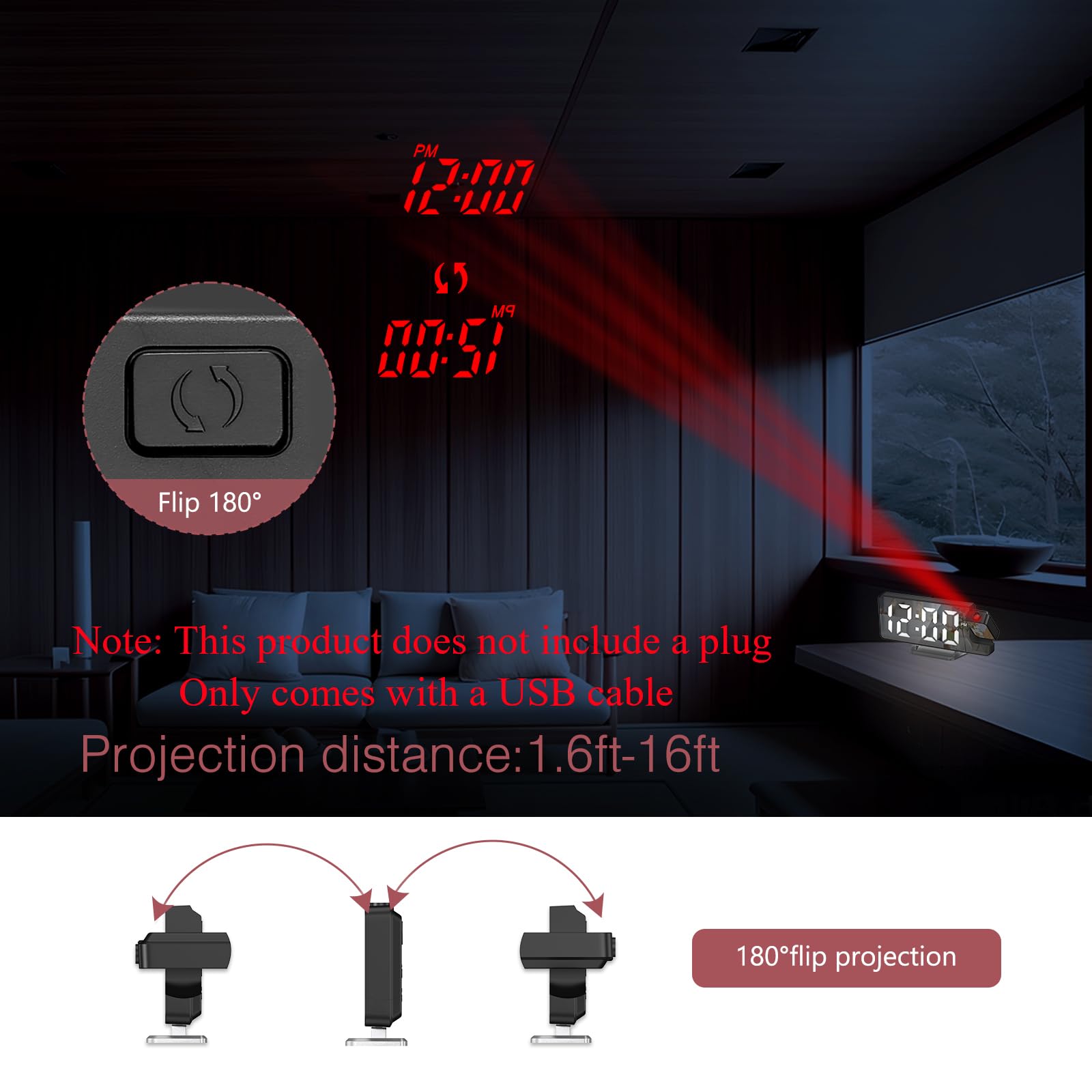 【Ultra Clear Display & Projection】The projection alarm clock uses a 7.9-inch LED display with large fonts and higher clarity. The upgraded LCD projector supports 180 ° rotation and brightness adjustment, which is more convenient to use. Projection distance: 1.6ft-16ft.