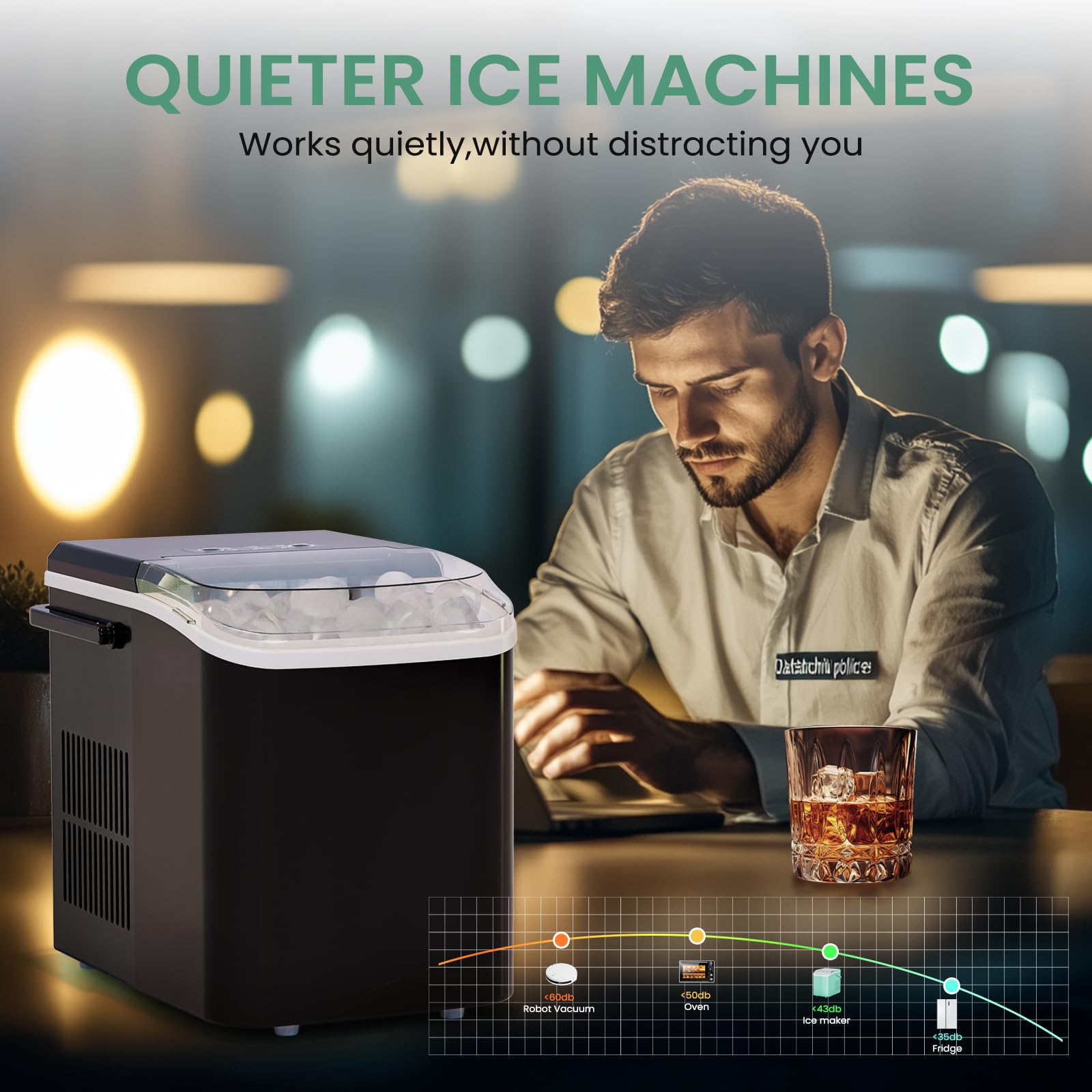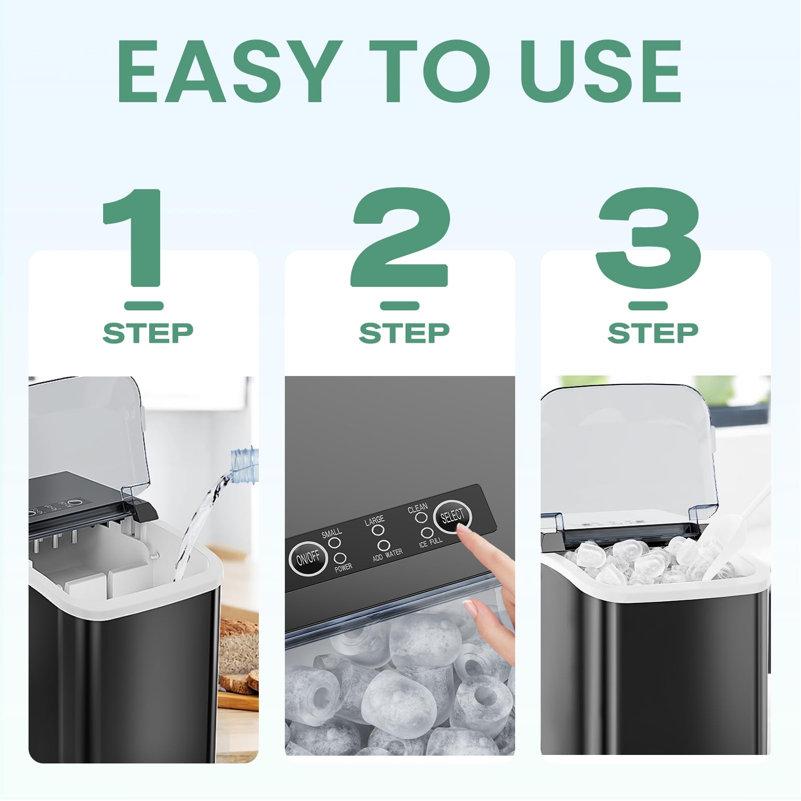Versatile with Two Ice Sizes & Easy-Fill Tank: Enjoy customizable ice with two size options to suit any drink. The portable ice machine features a 1.5L easy-fill water tank and compact design, making it a flexible portable ice maker perfect for countertops, RVs, or small gatherings.