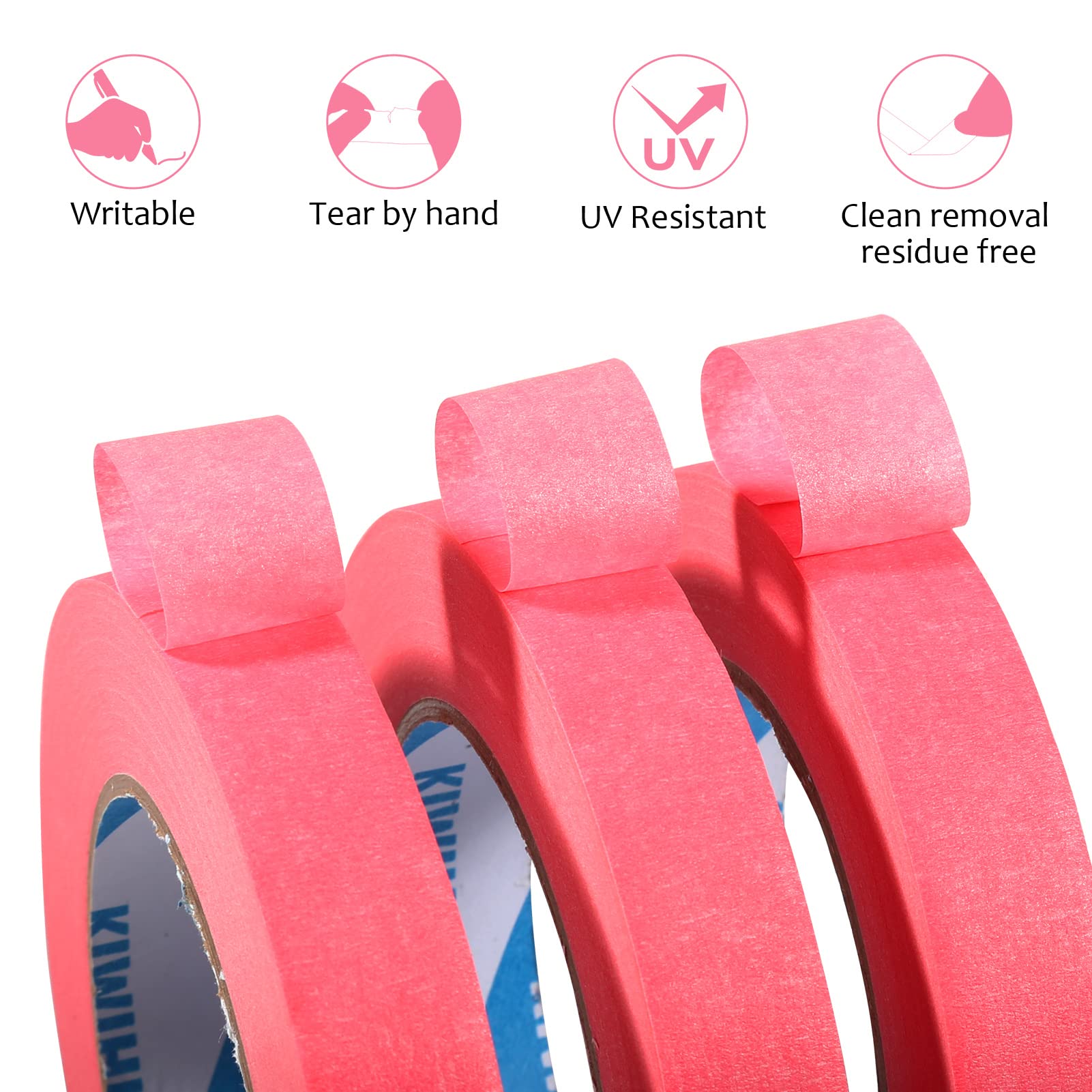 No Residue : Pink masking tape adopts High-grade rubber that with medium adhesive that can be removed easily without leaving a sticky residue, won't damage the wall, paint