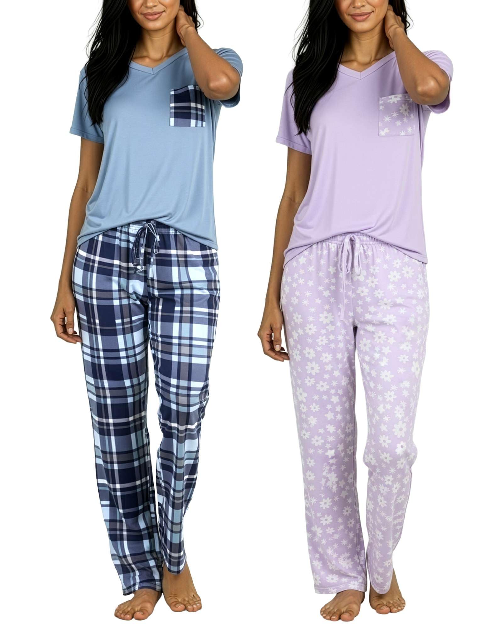 SOFT & COMFY WOMENโS SLEEPWEAR: Real Essentials 2 Pack Womenโs Pajama Sets deliver everyday comfort with smooth, breathable fabric that feels soft on the skinโperfect for lounging, relaxing, or sleeping in style.