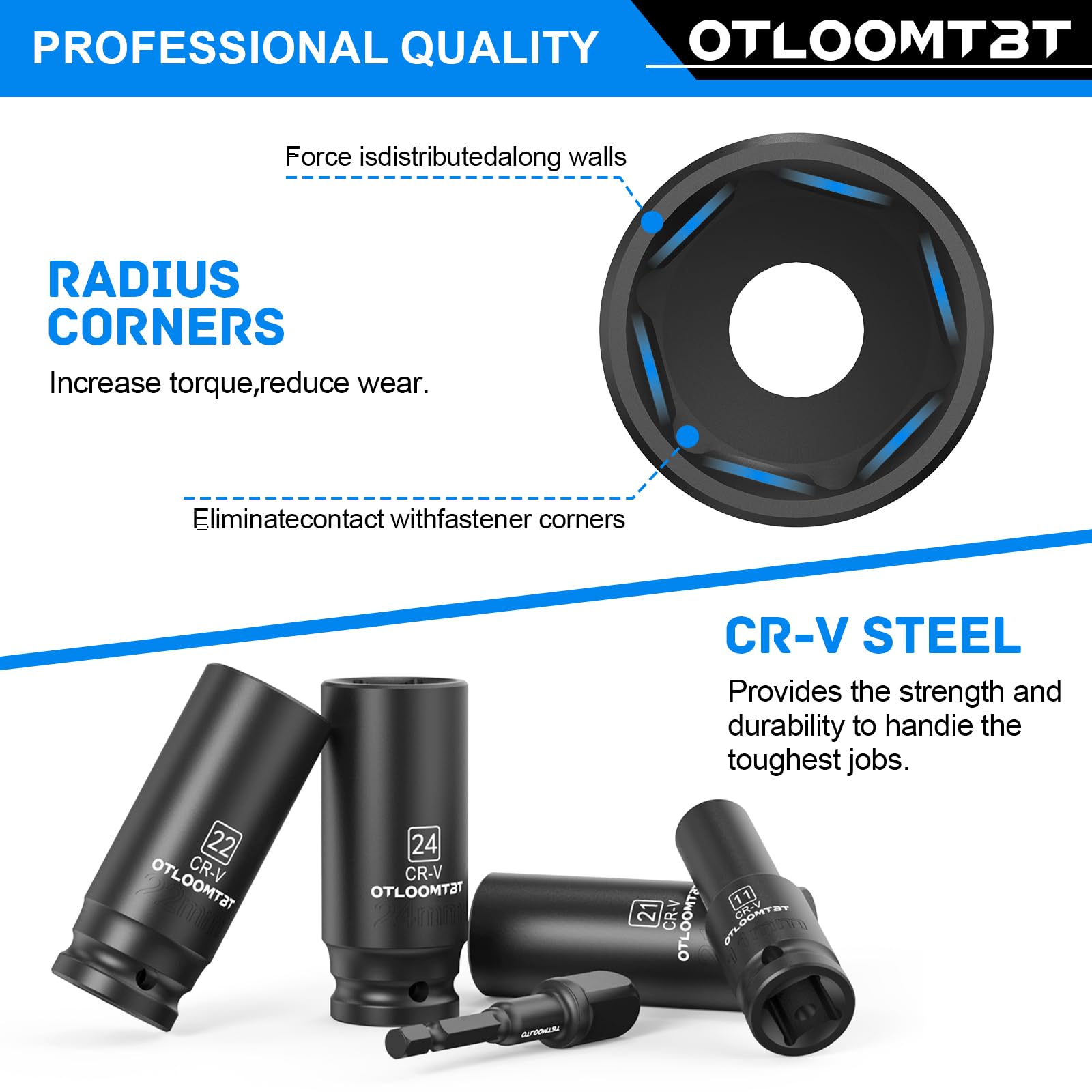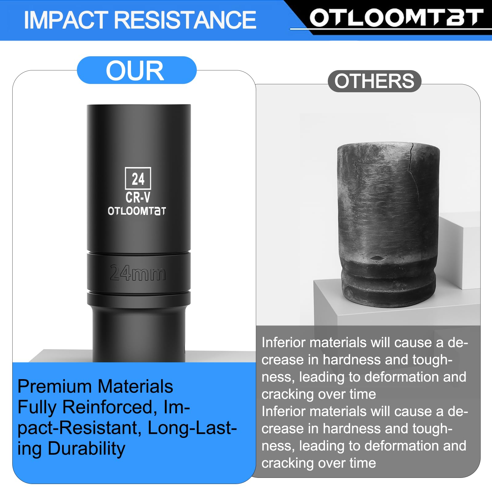 【Industrial-Grade Durability】 Forged from heavy-duty chrome-vanadium steel, these impact sockets are built to withstand extreme torque and repeated impacts, ideal for demanding automotive and mechanical tasks
