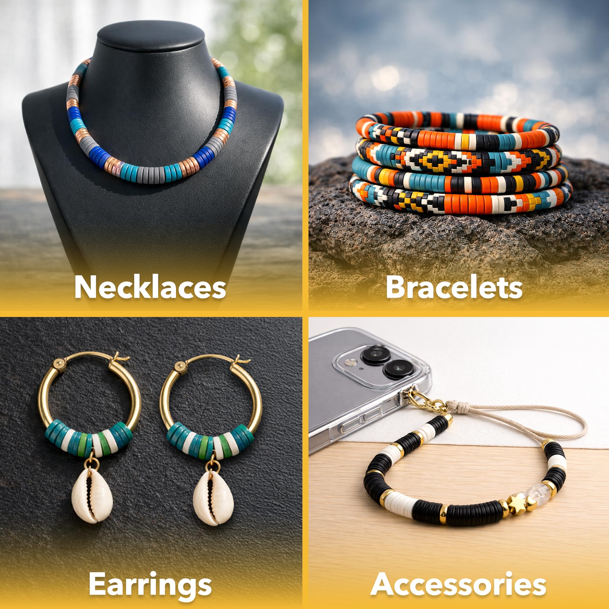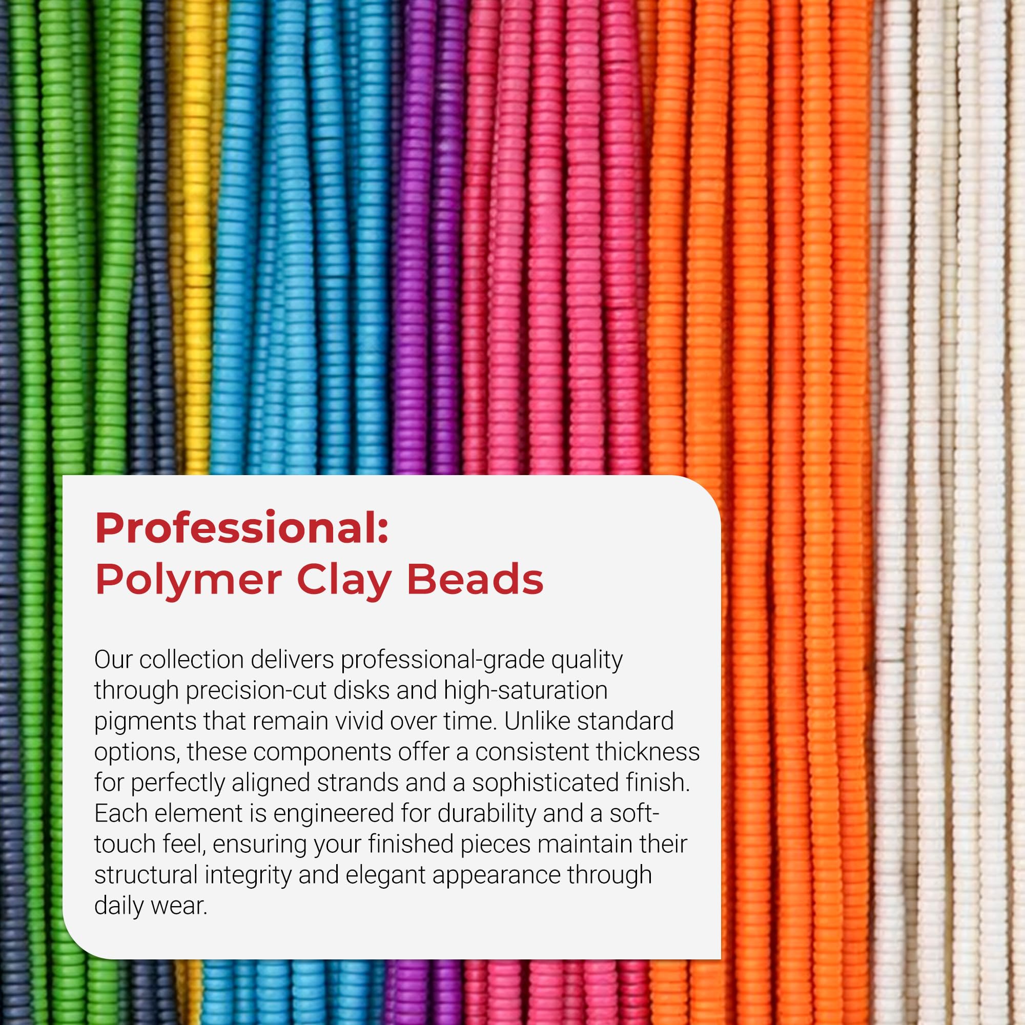 Heishi Beads Set for Adult Beading & Jewelry Design: Compatible with yarn, wire, thread, cord, twine, and elastic, the mini clay beads support professional handcrafted jewelry applications such as making clay bead charms, earrings, necklaces, or pendants.