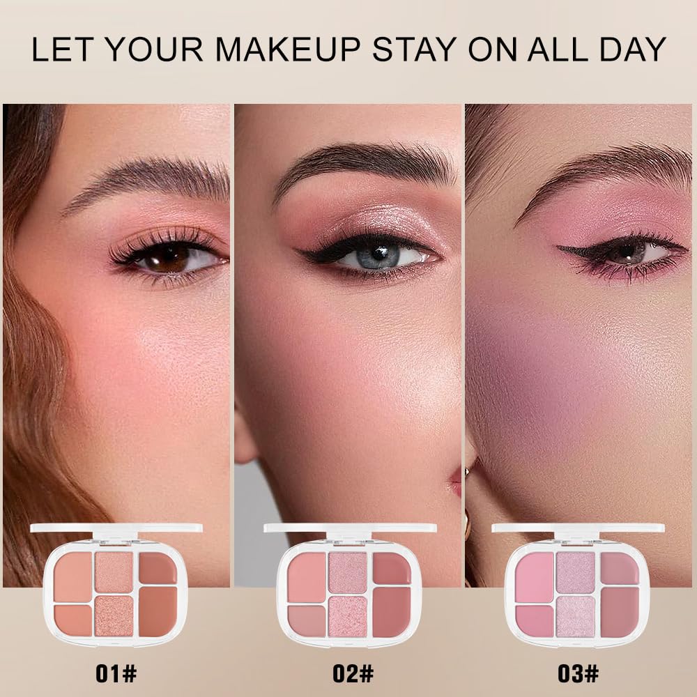 6-in-1 Multi-Functional Face Palette: This all-in-one palette features 6 versatile cream and powder formulas that function as blush, highlighter, and eyeshadow — giving you everything you need to complete a full face look in one compact design.