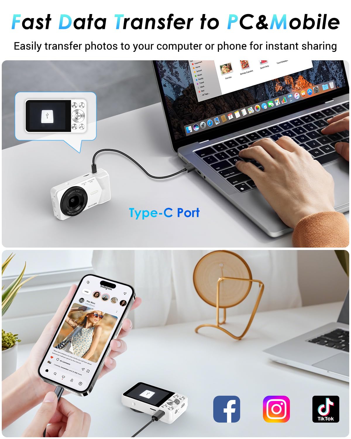 4K 64MP Autofocus Digital Camera: Say goodbye to blurry, grainy photos. Our upgraded CMOS sensor delivers crystal-clear 64MP pictures and smooth 4K video. Fast autofocus ensures your subjects are sharp and in focus - just point, shoot, and capture even the finest details