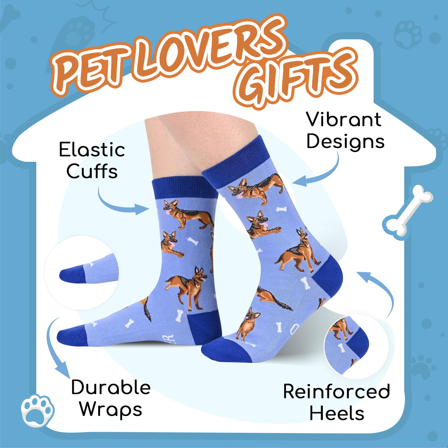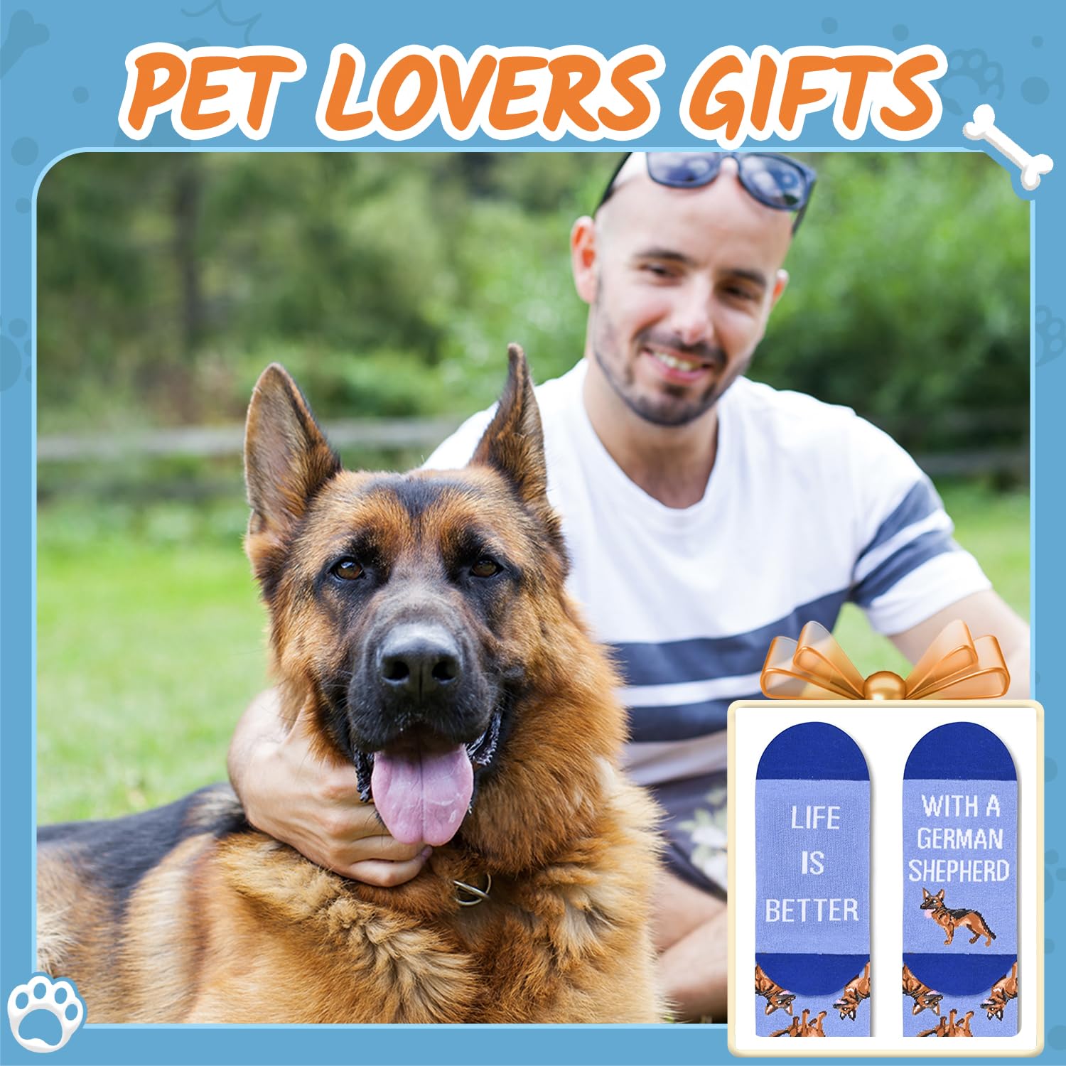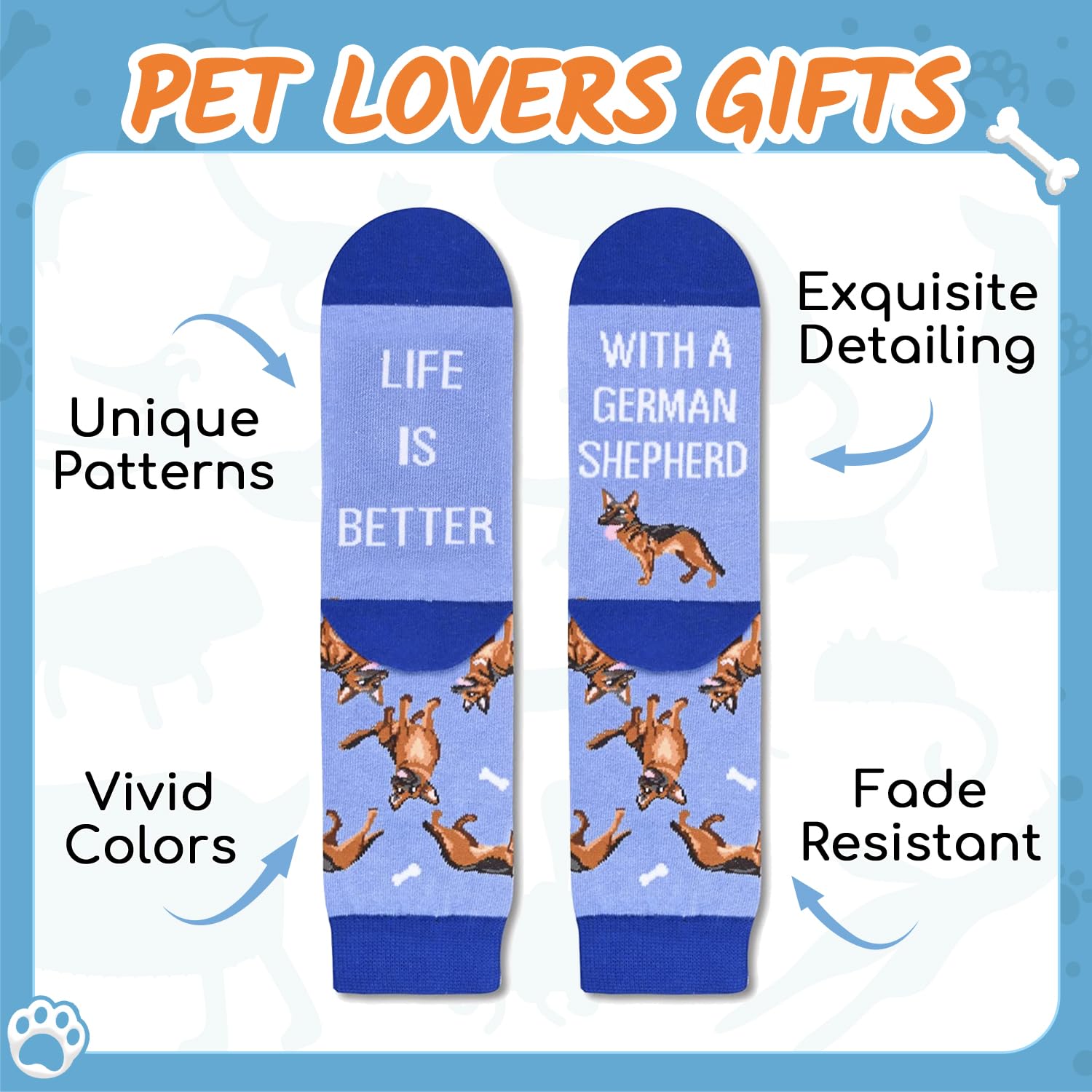 GERMAN SHEPHERD LOVER GIFTS - Our unisex design fits most men's US size 6-13 feet and most women's US size 7 and up. Each exclusive gift box contains one pair of funny shepherd socks.