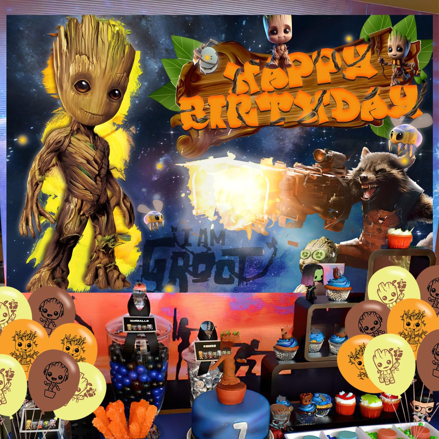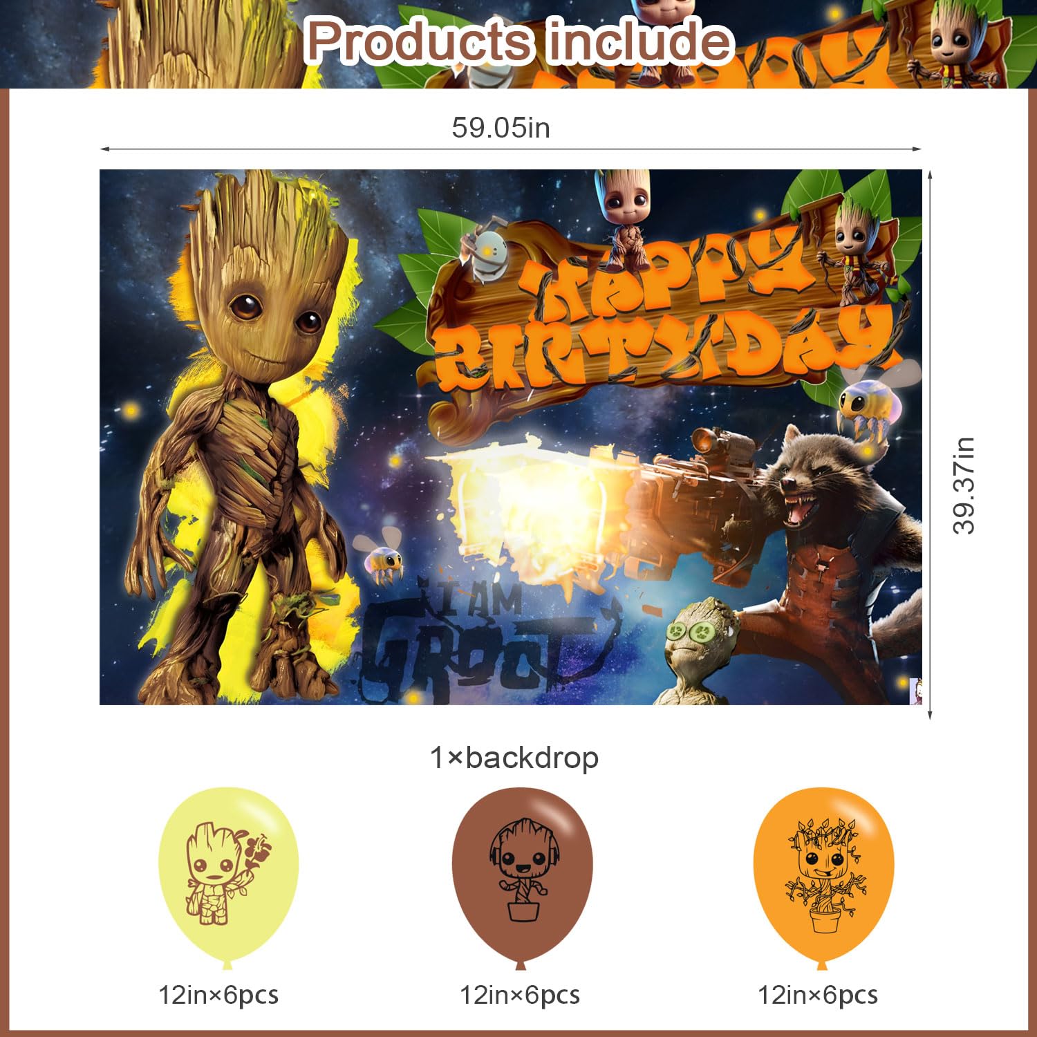 Cute Groot Size: 5ft(W) x 3ft(H)/150cm x 100cm,18 Pcs Cartoon Cute Groot Party ballons.