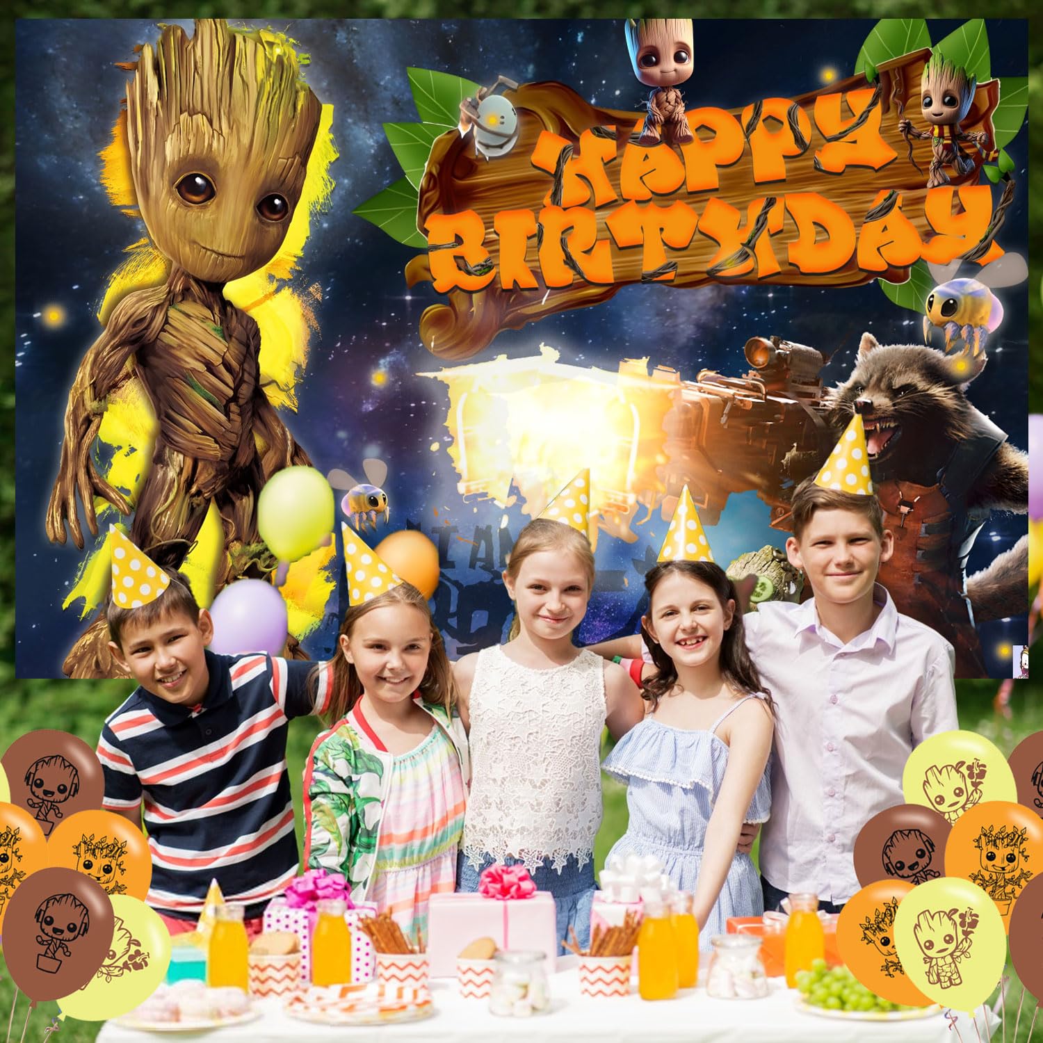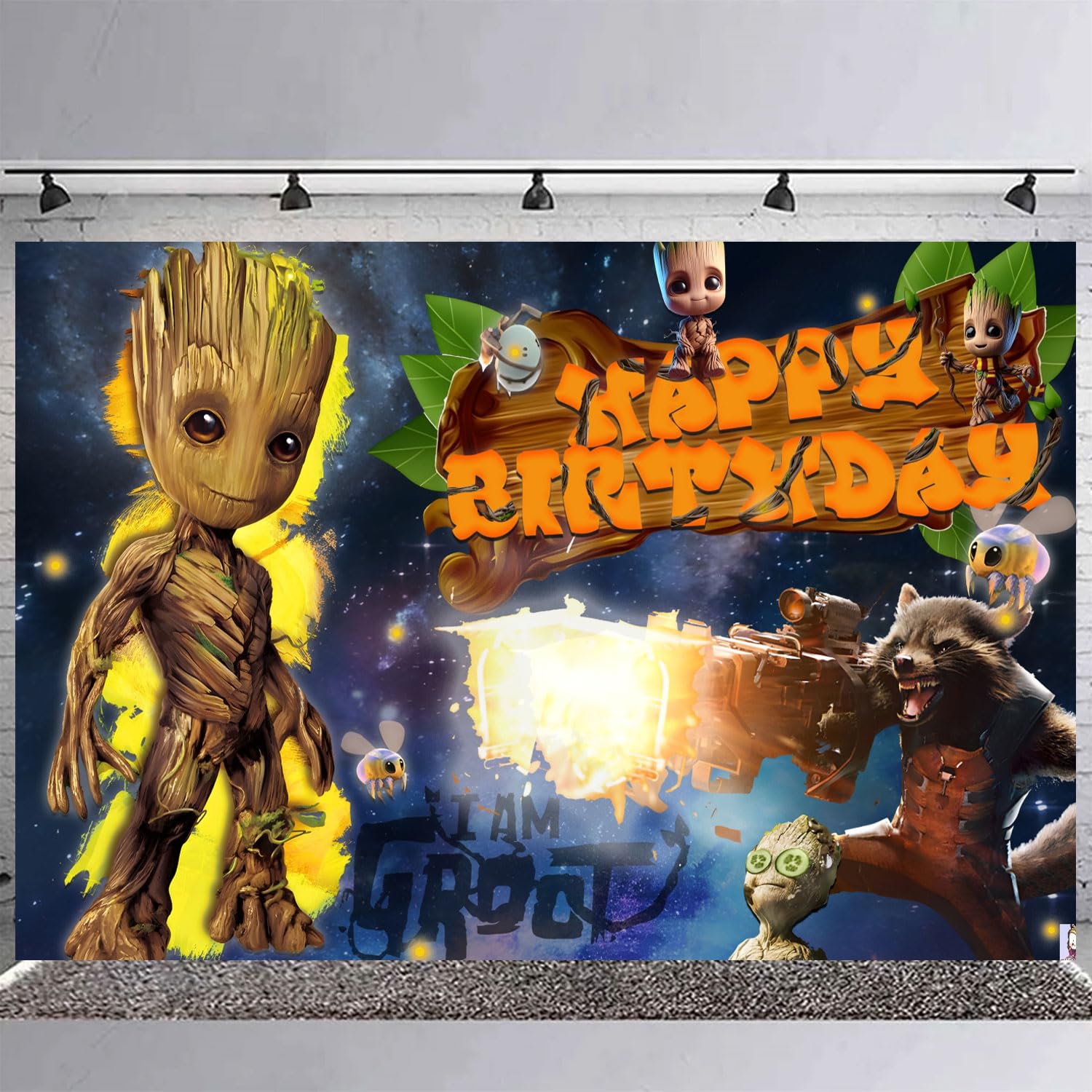 Groot Birthday Party Backdrosp, Cartoon Groots Birthday Party Decoration,Cartoon Birthday Banner Shoot Photo Backgrounds Props for Party 5x3ft