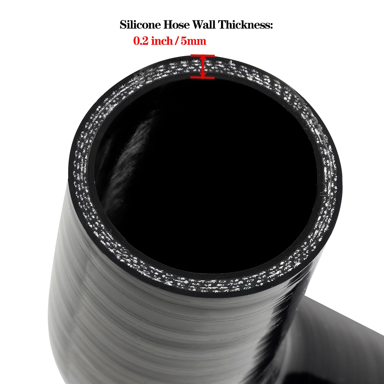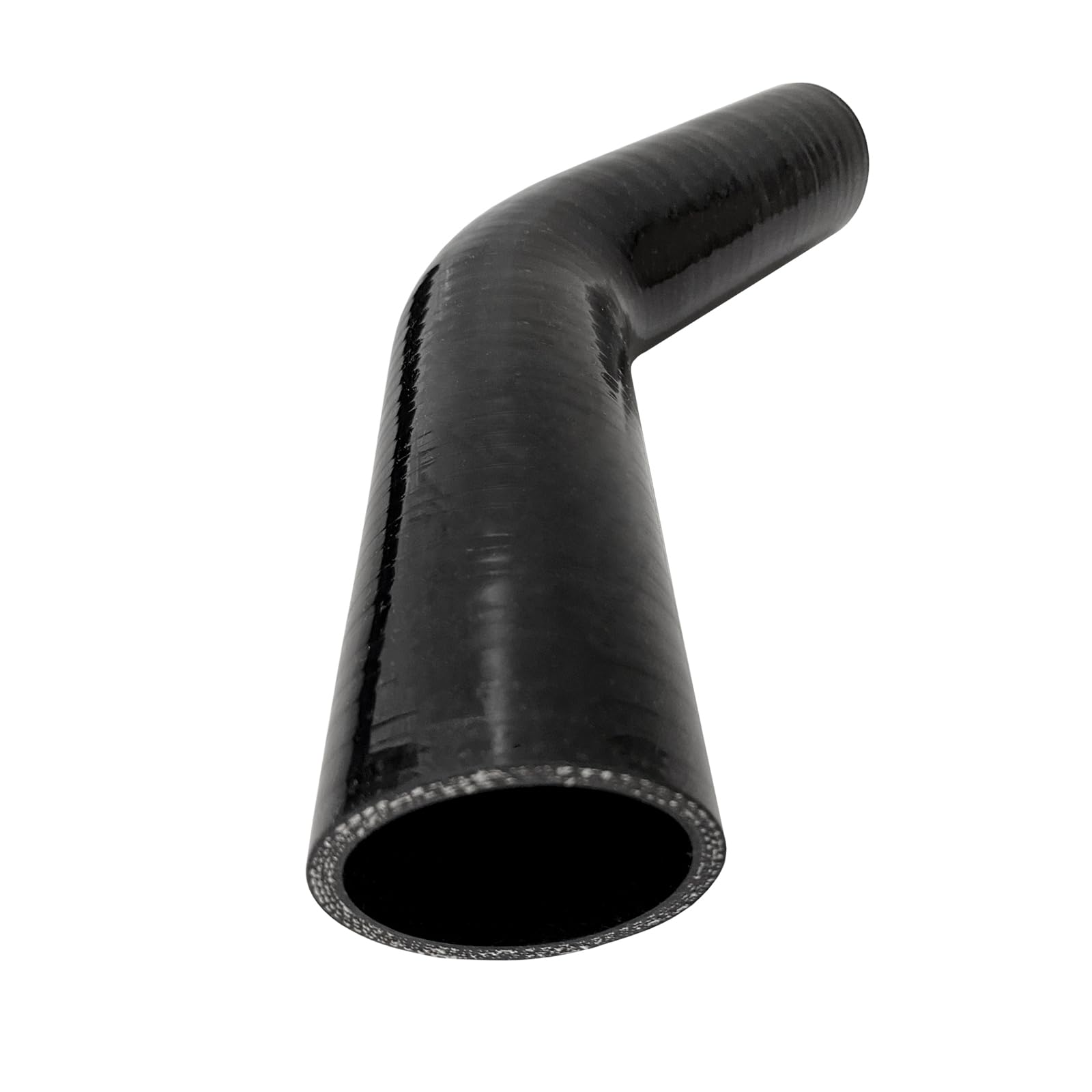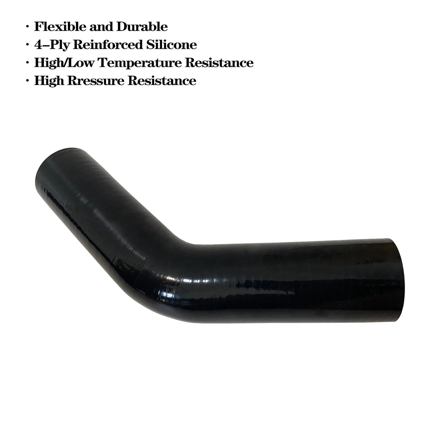 MATERIAL: 1.75" silicone 45 degree intake elbow is made of pure silicone material with 4-layer reinforced construction for flexibility, durability, pressure and temperature resistance.