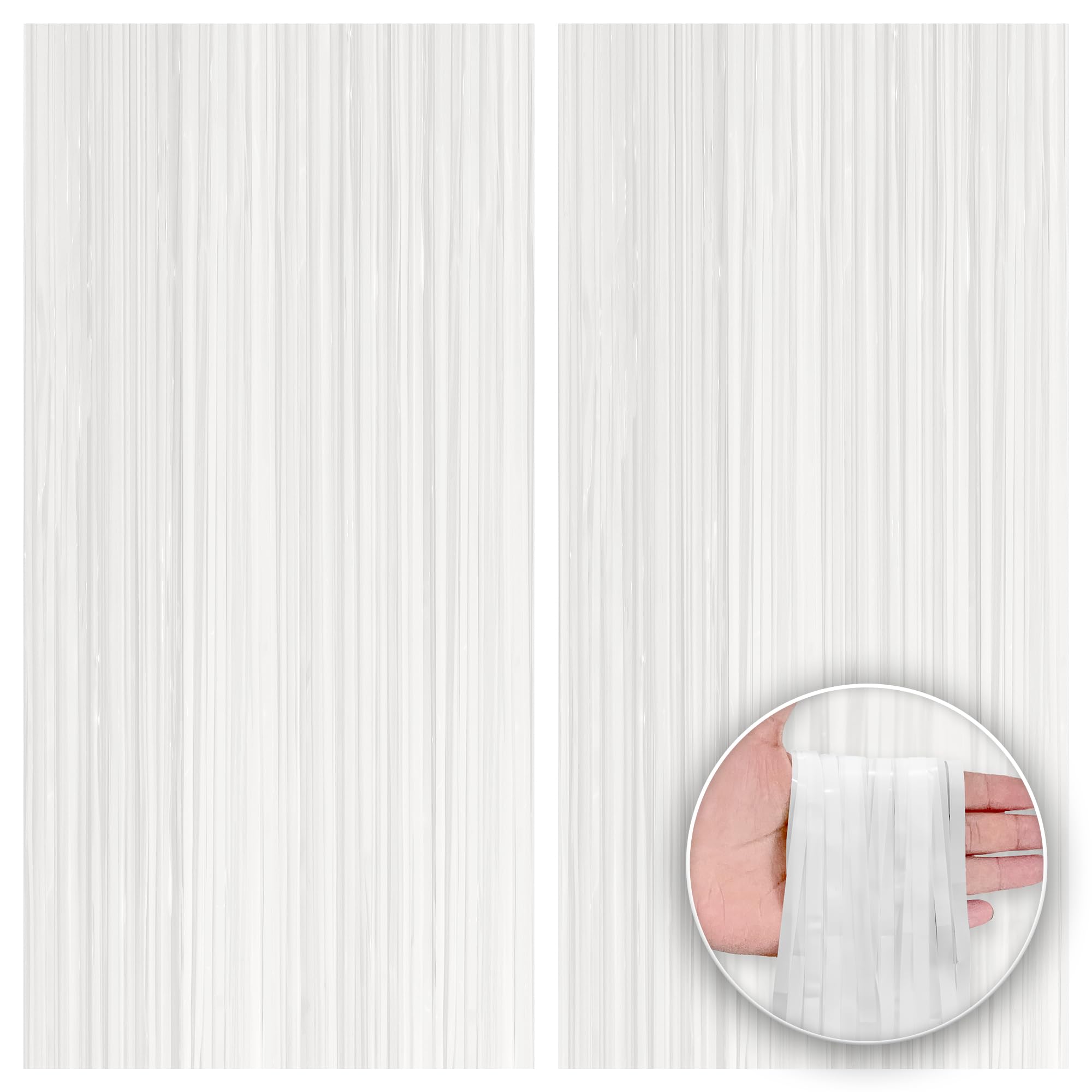 STURDY AND DURABLE | REUSABLE : Crafted from premium foil, these panels resist tearing and tangling, making them ideal for multiple celebrations. Create unexpected flair with white foil fringe curtain layers and crisp white fringe curtain panels. Decorate with white tinsel streamers or white party streamers to build texture, or drape white streamers party decorations and white streamers decor along tables and walls for a cohesive, shimmering effect.