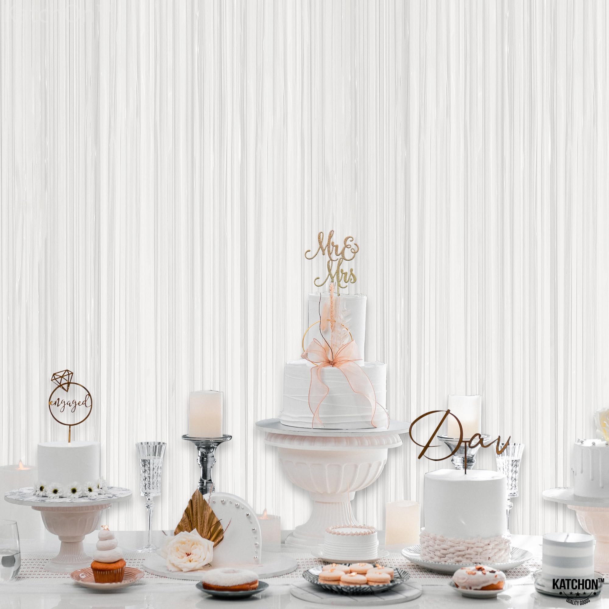 XTRALARGE 3.2X8 FEET | WHITE STREAMER BACKDROP : Make a grand entrance with this extra-large 3.2X8 FEET metallic foil streamer backdrop, Pack of 2. The versatile panels create a crisp white background backdrop and refined white backdrop curtain. Amplify any theme with a wide fringe backdrop white, gold and white foil fringe curtain, tin foil fringe backdrops white, and white and black backdrop for dynamic white background streamers.