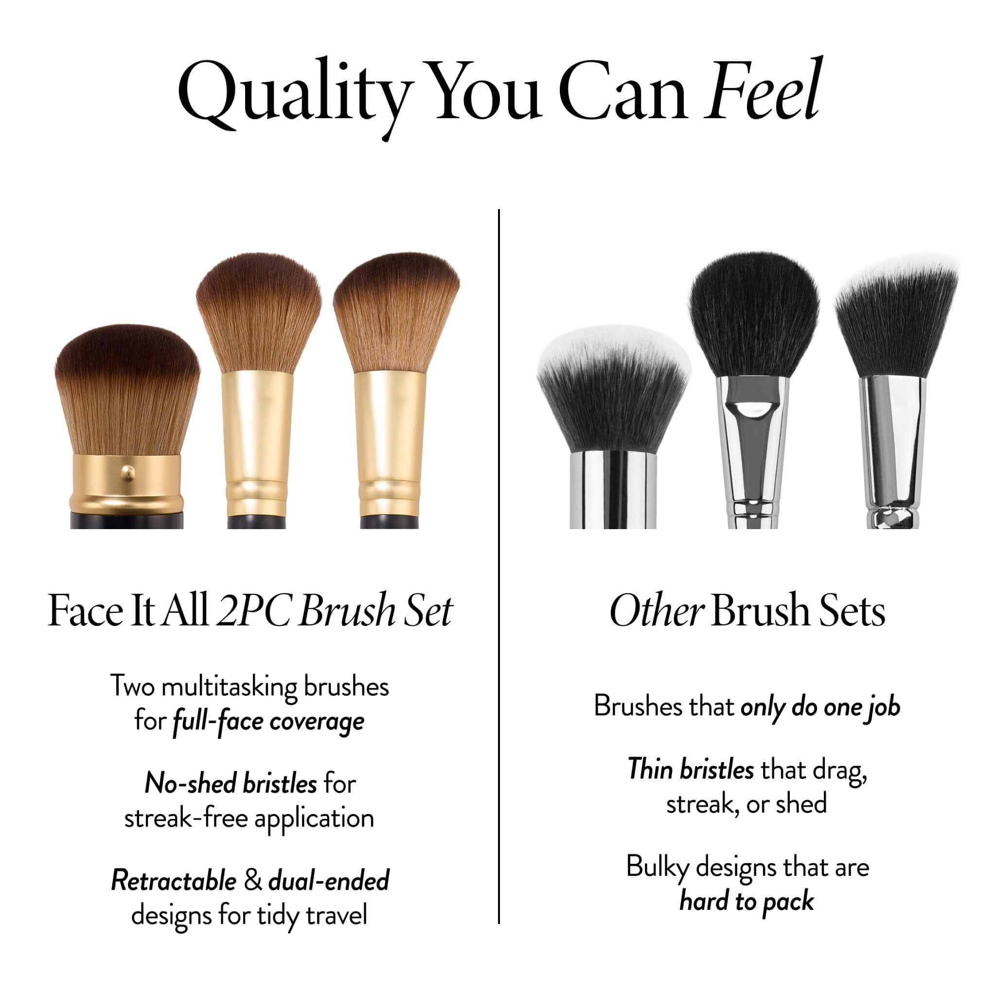 PERFECT FOR TRAVEL: Face whatever comes your way with this dynamic duo! This set includes two convenient and portable makeup brushes that are versatile, sleek, and great for travel!