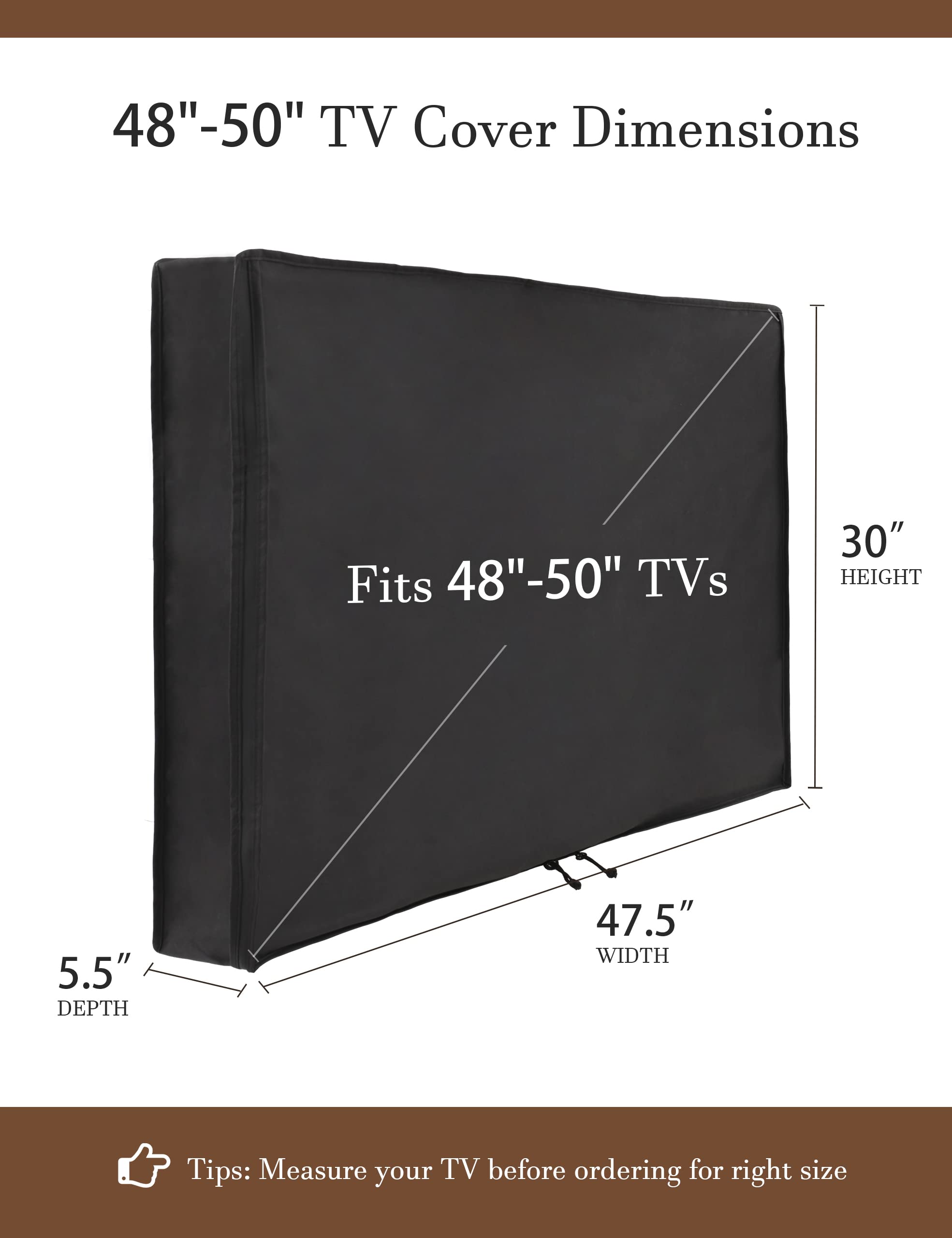 Find The Right Fit: Available in the perfect size for your outdoor TV, our cover measures 47.5 inch wide, 30 inch high, 5 inch deep. Before purchasing, be sure to measure your TV to ensure a proper fit