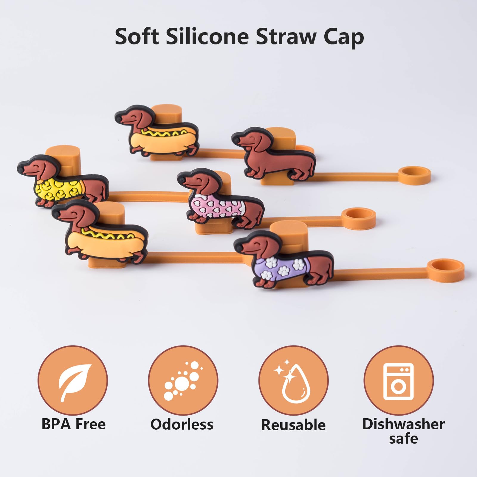 Cute Dachshund Dog Straw toppers: 6PCS cute stanley straw covers in different dog shape design such as Dachshund,Frenchie,Bull Dog, Labrador Theme,which makes your cup look cuter and more attractive.You can use them to change a good mood every day.Chrimstmas gifts for dog lover, Dachshund dog Gifts for women.