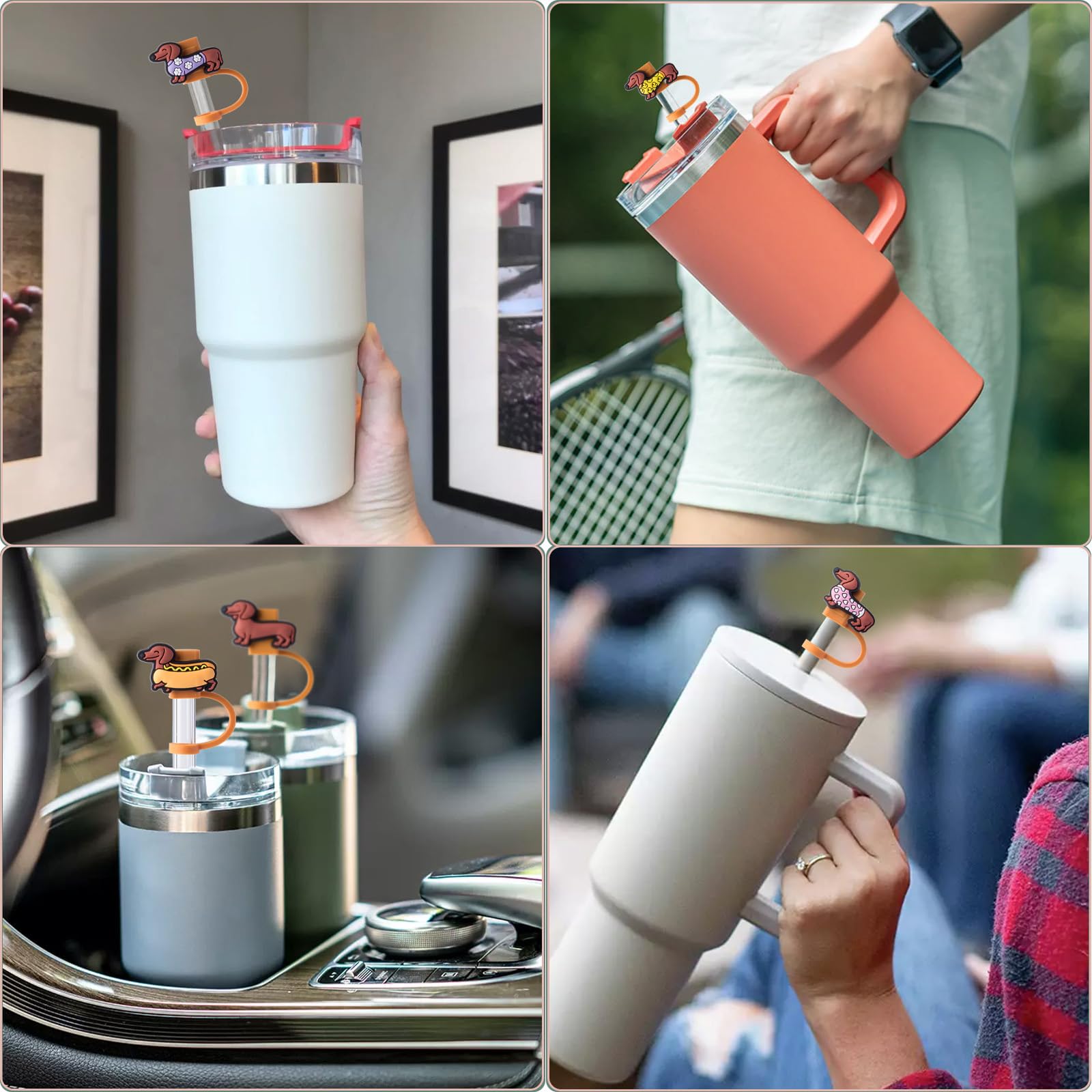 10mm weiner dog Straw Covers: Our straw covers are compatible with Stanley 30&40oz tumbler straws. Also fits all straws with an outer diameter of 0.4 inches. A great way to keep your straw clean, also good for preventing spills, Fit perfectly!