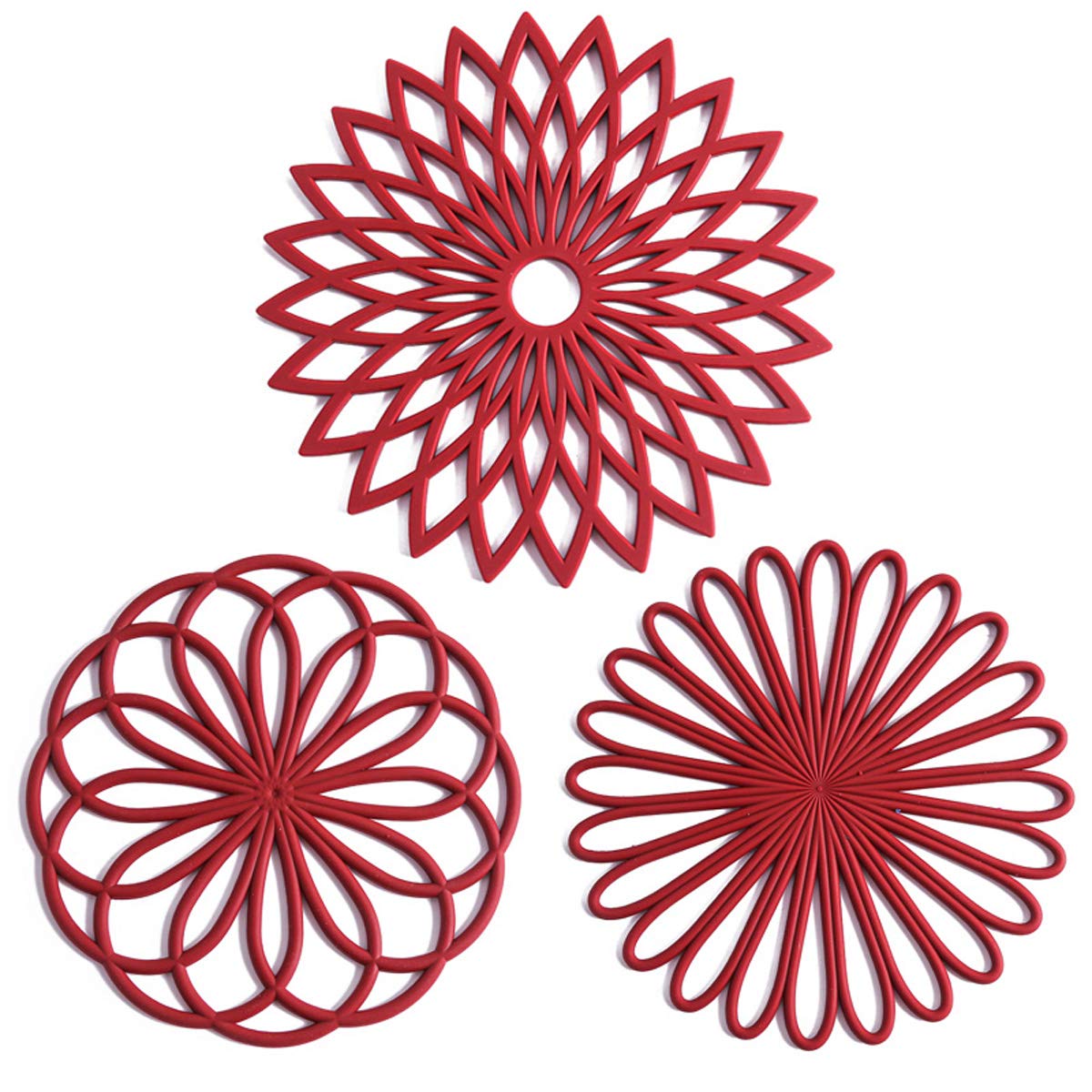 Decorative and Color Your Home: This silicone trivet set has 3 different designs to decor your home. Practical and useful hot mats for kitchen but also work great to enhances the decor to your Dinner room, Terrance and any other place at home.