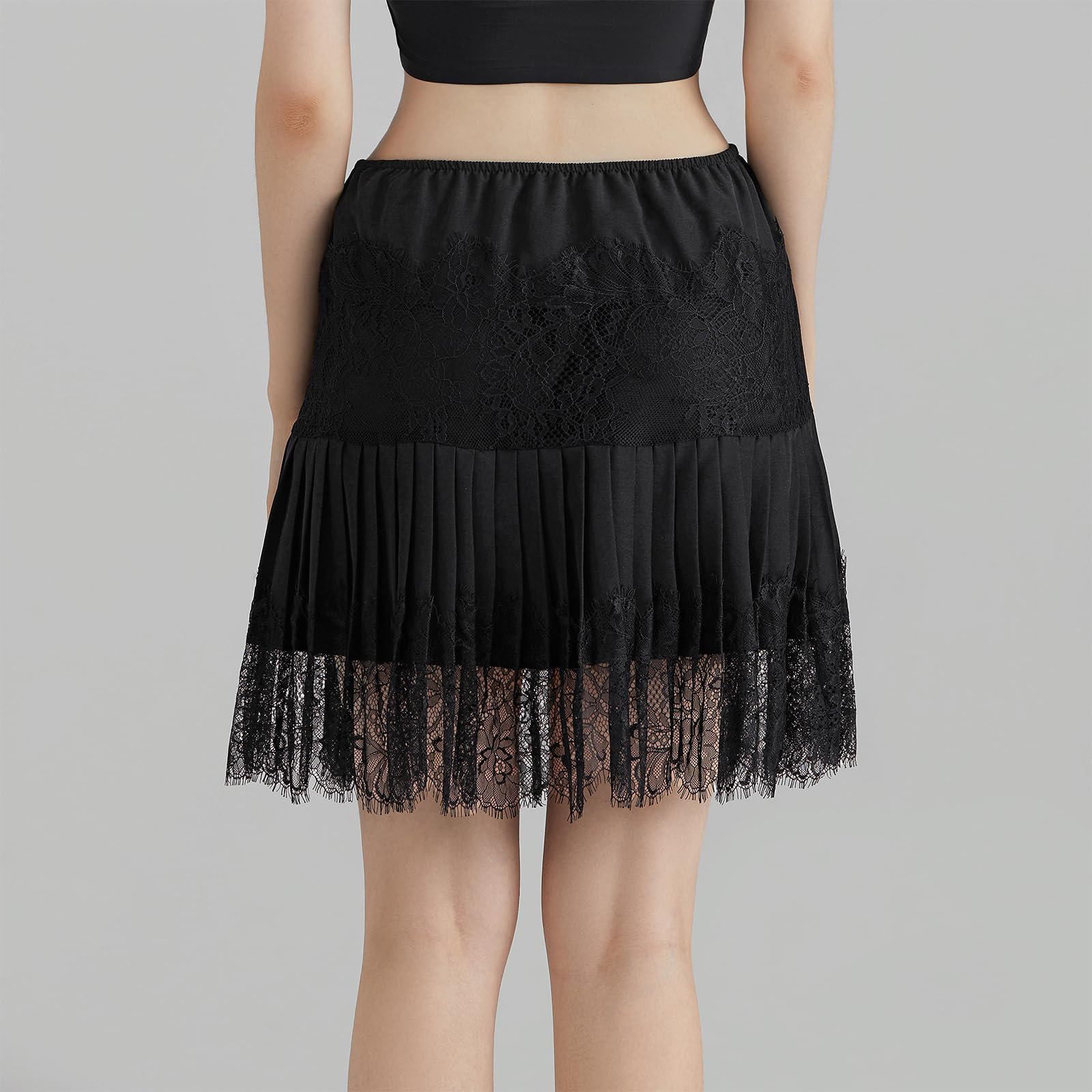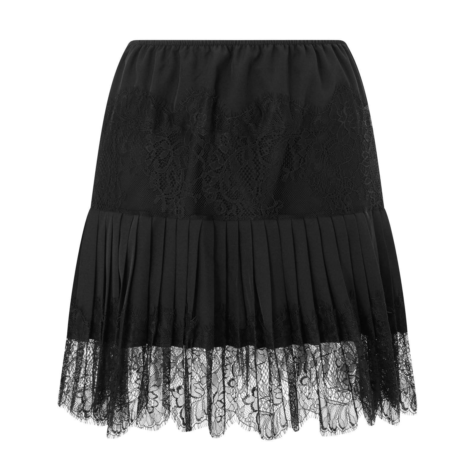 Style: Women y2k ruffle mini skirt, mid rise pleated short skirt, A line flowy half slip undershirt, lace trim tiered layered mini skirts, this lace mini skirt can be layered up or down for effortlessly, perfect to pair with any outfits.