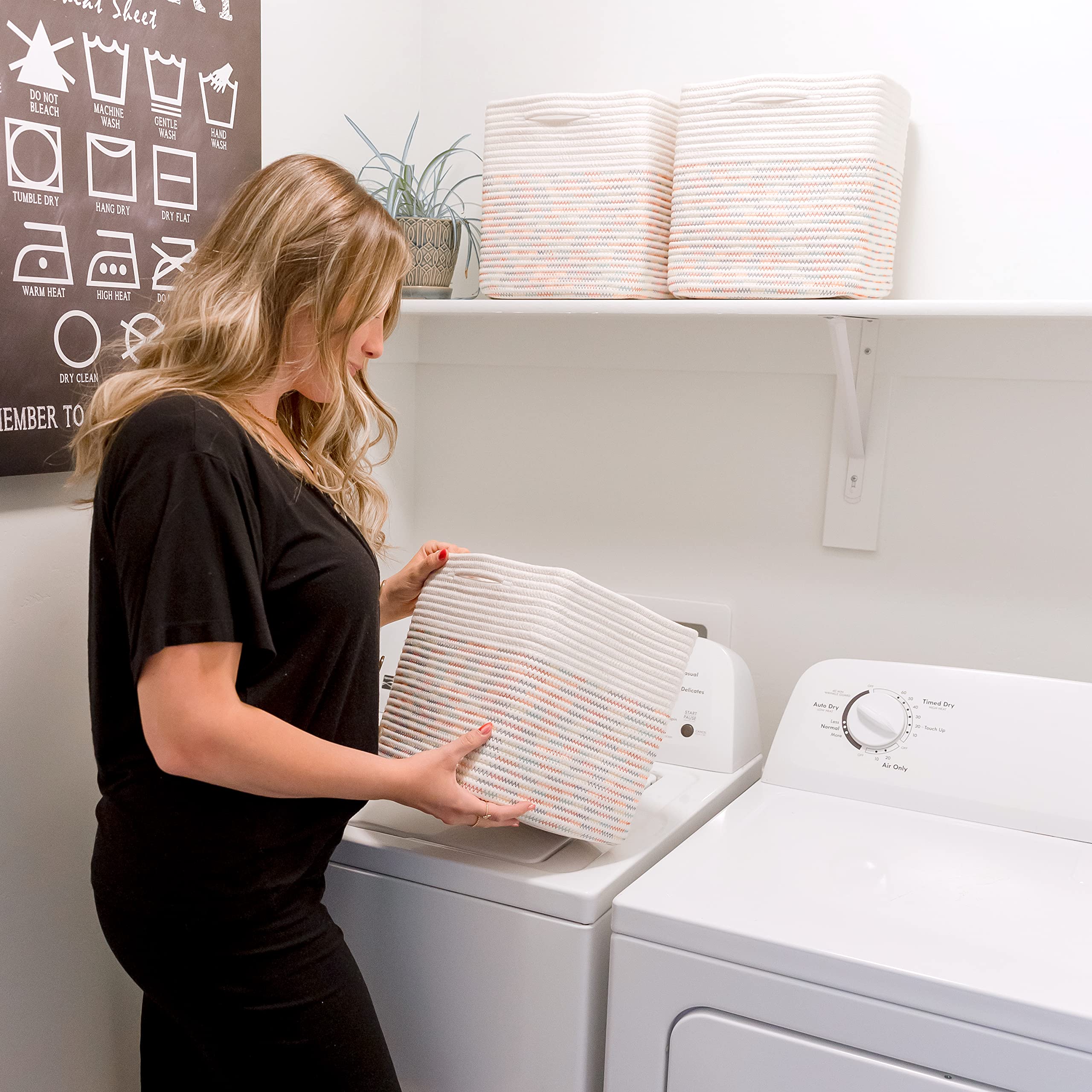 Reinforced Hidden Handles: Now you see ‘em, now you don’t! With completely hidden handles that blend seamlessly into the rope basket, you’ll be the Houdini of home organizing. They’re even double-stitched and reinforced for extra heavy loads!