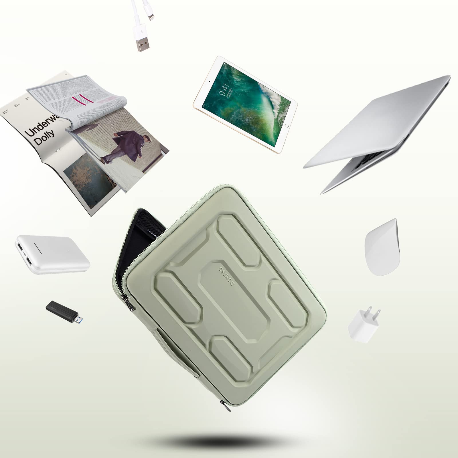 Built-In Bump Protection : Built with a thickened EVA hard shell and soft foam interior, this sleeve absorbs daily knocks and unexpected drops with ease. Whether it's shoved in a crowded backpack or tossed onto a TSA tray, your laptop is cushioned on all sides. It's perfect for frequent travelers, commuters, and students who demand impact protection without bulk.